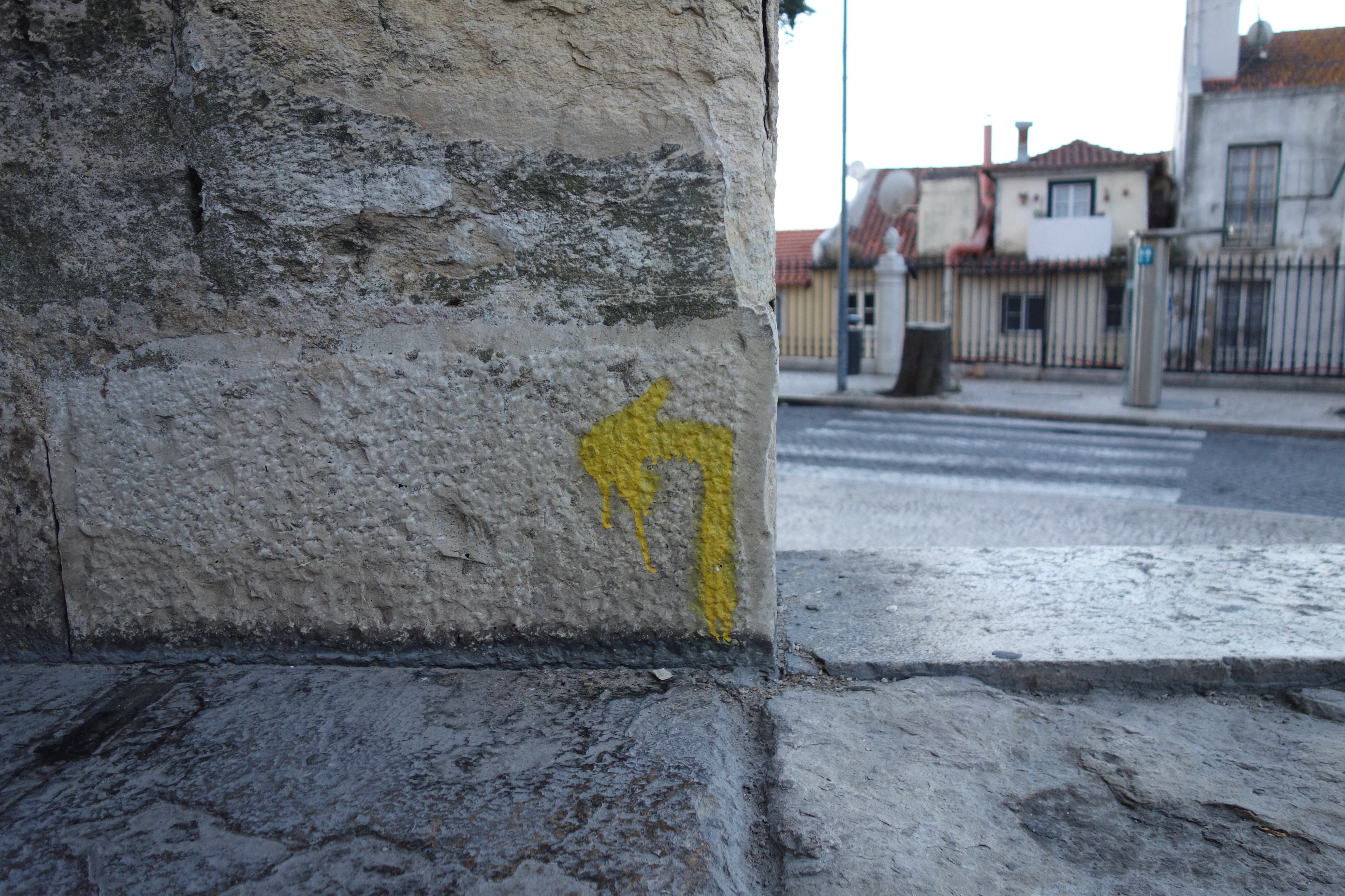Camino Portuguese-023 Published August 29, 2014 at 5472 × 3648 in Day 1, Lisbon to Vilafranca de Xira, 45km ← Previous Next → The first arrow you’ll see outside the cathedral on your left (with your back to the cathedral)