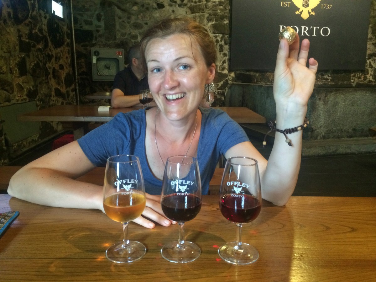 Camino Portuguese-376 Published August 29, 2014 at 3264 × 2448 in Day 14, Grijo to Porto 16.1km ← Previous Next → Joanna tasting port at Offley