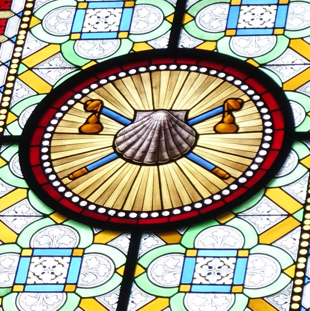 Camino Portuguese-593 Published August 29, 2014 at 1078 × 1083 in Day 16, Vilarinho to Barcelos, 33.7km ← Previous Next → Stainglass window inside Santuario de Peregrina, Pontevedra