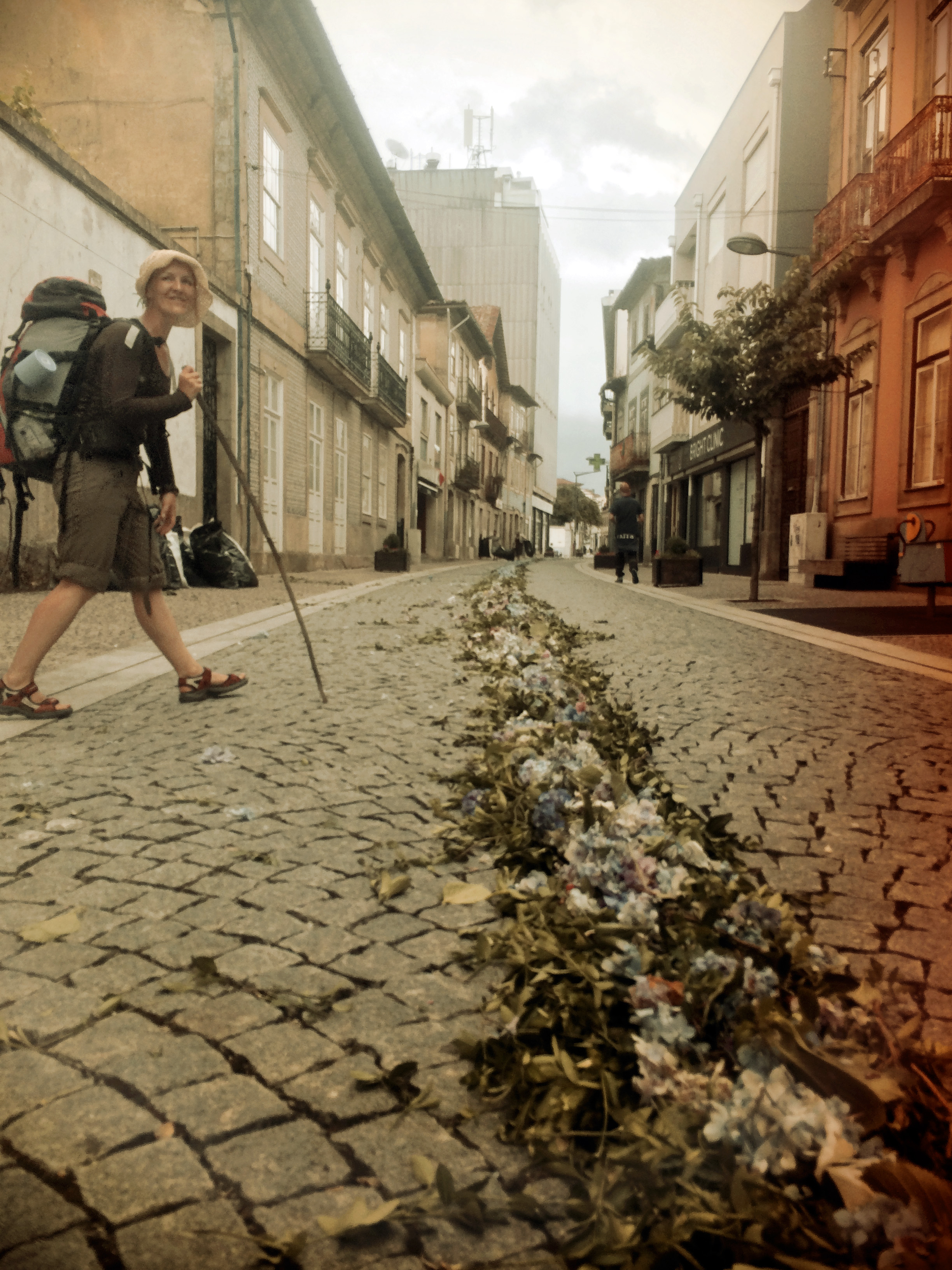 Camino Portuguese-311 Published August 29, 2014 at 2448 × 3264 in Day 7, Tomar to Alvaiazere, 34.2km ← Previous Next → Joanna and the festival flowers
