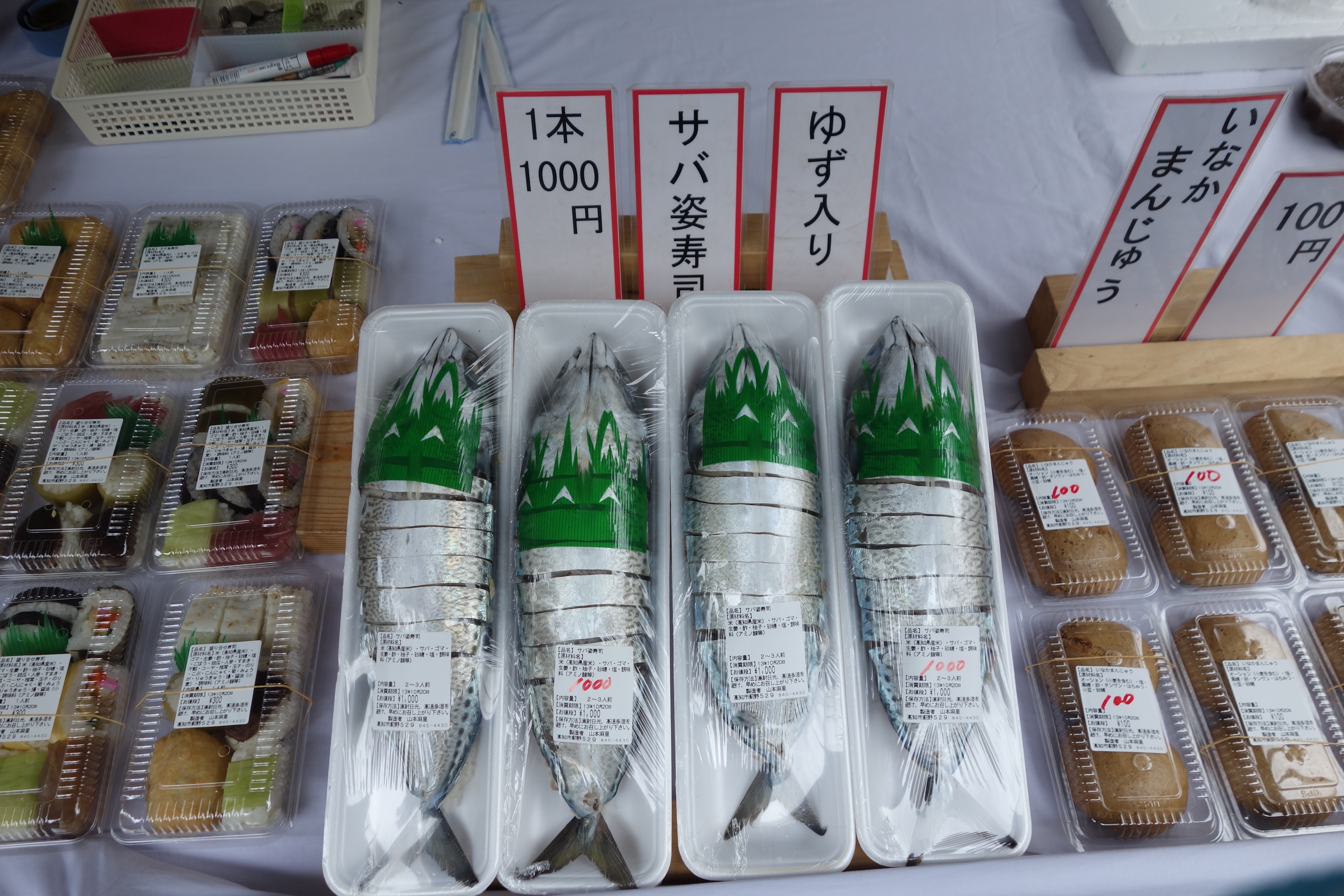 Shikoku 88 Temple Pilgrimage-0508 Published September 21, 2014 at 5472 × 3648 in Day 15, Temple 30-31, 24km ← Previous Next → Stuffed fish sushi at Kochi market
