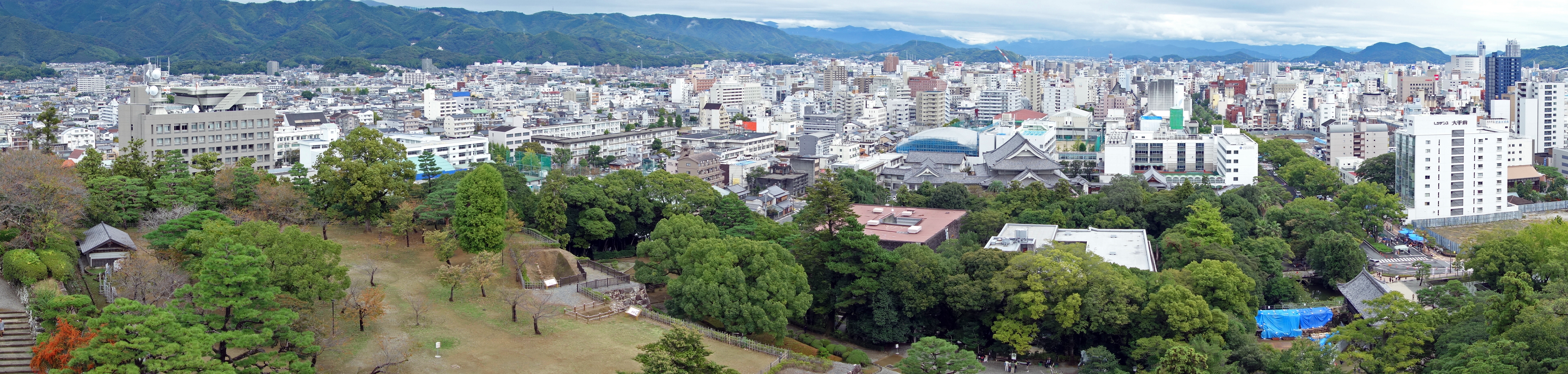 Shikoku 88 Temple Pilgrimage-0517 Published September 21, 2014 at 7776 × 1856 in Day 15, Temple 30-31, 24km ← Previous Next → The view of Kochi from the castle