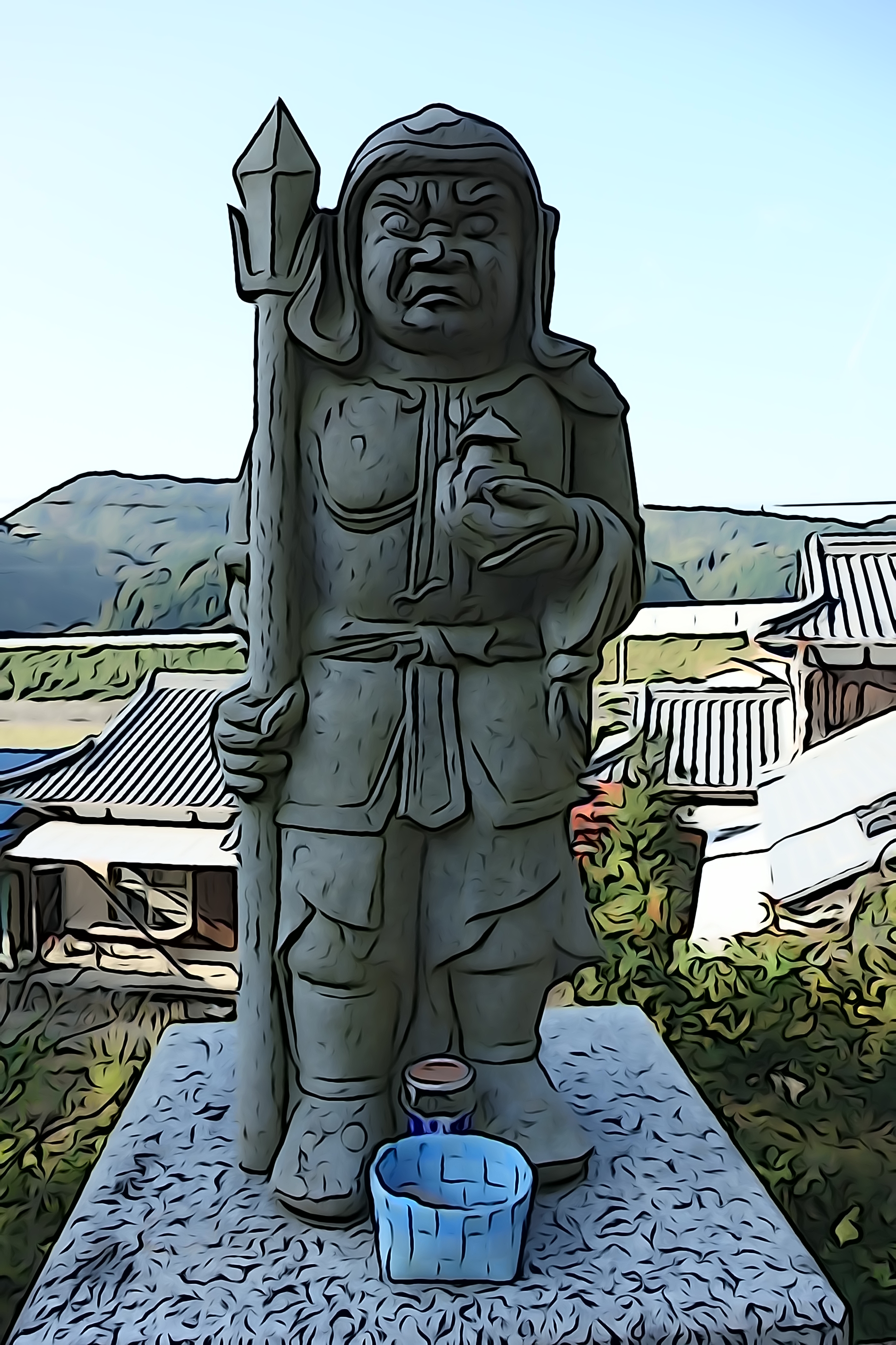 Shikoku 88 Temple Pilgrimage-054 Published September 21, 2014 at 3648 × 5472 in Day 25, Temples 41-43, 52km – Shikoku 88 Temple Pilgrimage ← Previous Next → Bishamon, the God of wealth