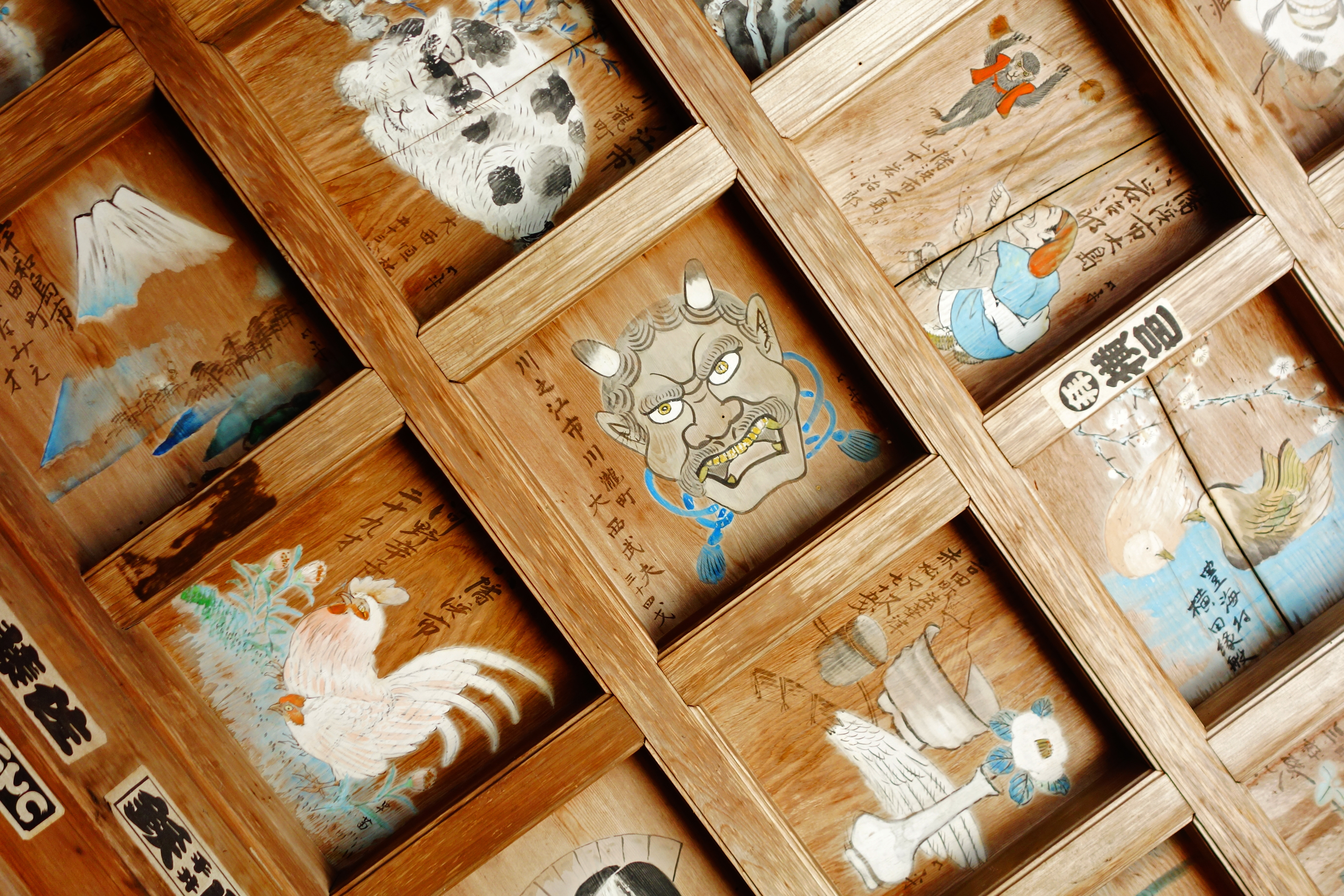 Shikoku 88 Temple Pilgrimage-068 Published September 21, 2014 at 5472 × 3648 in Day 25, Temples 41-43, 52km – Shikoku 88 Temple Pilgrimage ← Previous Next → Paintings on the ceiling in Temple 43, Meisekiji