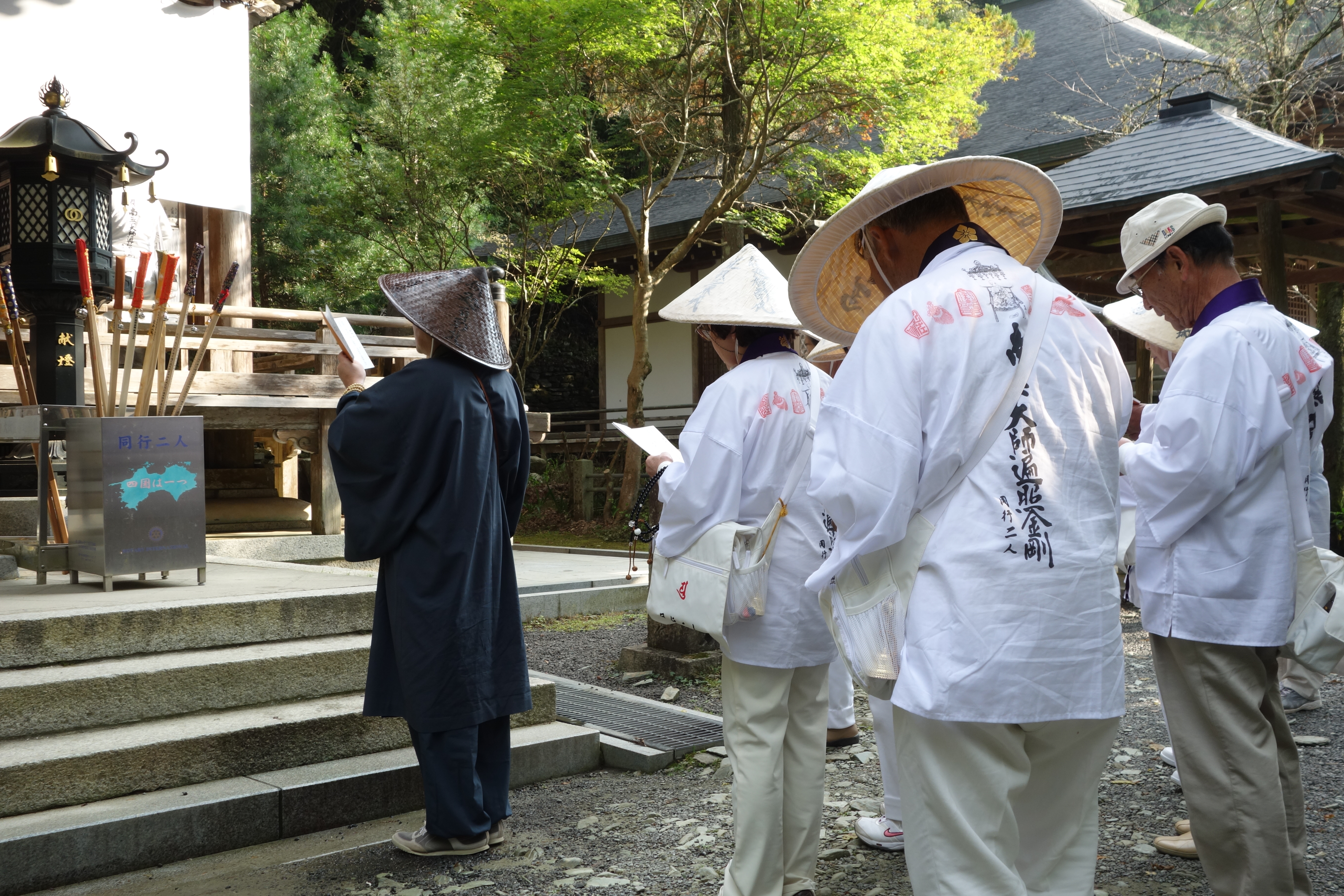 Shikoku 88 Temple Pilgrimage-106 Published September 21, 2014 at 5472 × 3648 in Day 27, Temples 44-45, 38km – Shikoku 88 Temple Pilgrimage ← Previous Next → Henro chanting at Temple 44, Daihoji