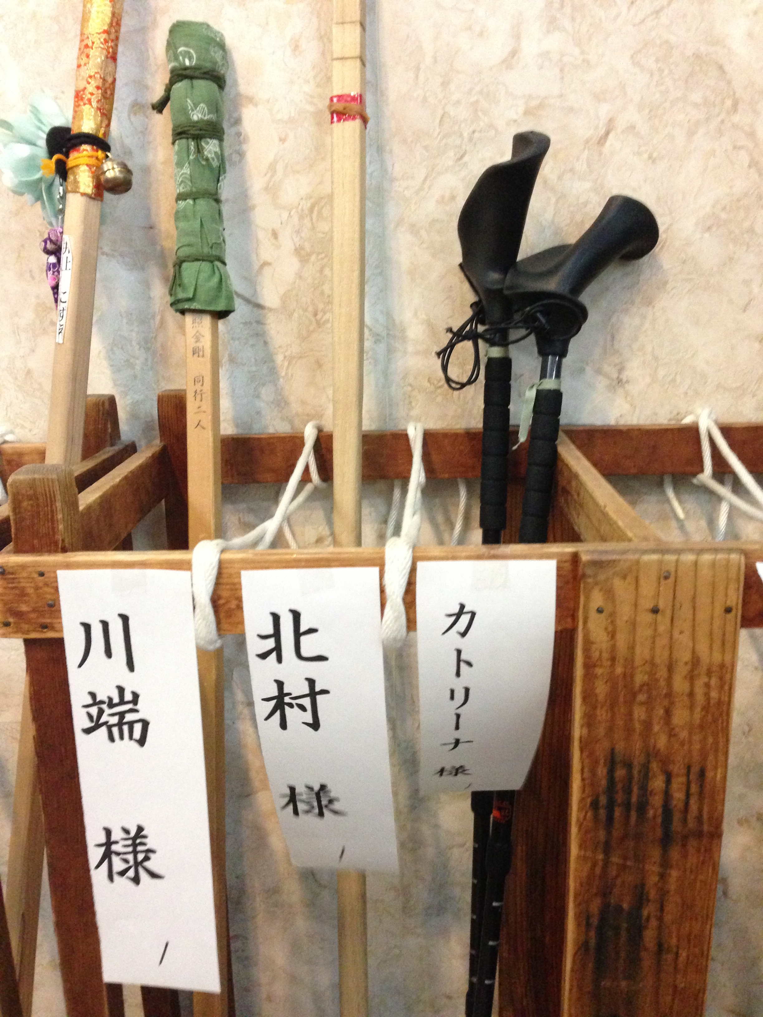 Shikoku 88 Temple Pilgrimage-445 Published September 21, 2014 at 2448 × 3264 in Day 38, Temples 71-75, 23km – Shikoku 88 Temple Pilgrimage ← Previous Next → My poles have a space with my name on it! At Temple 75, Zentsuji