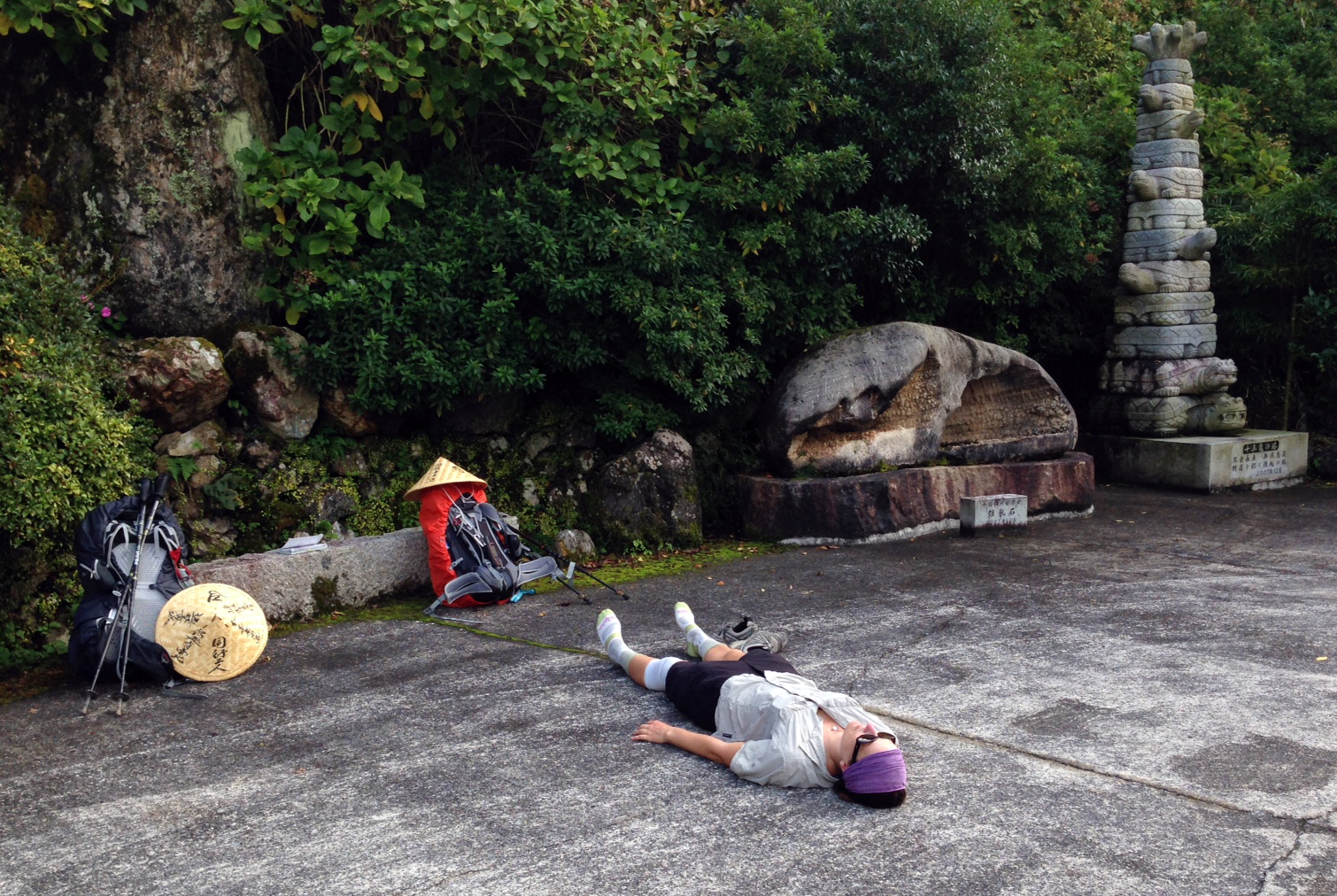 Shikoku 88 Temple Pilgrimage-0266 Published September 20, 2014 at 1510 × 1012 in Day 6, Temples 20 – 21, 24 km ← Previous Next → A 10 minute snooze on concrete!