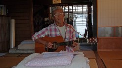 Shikoku 88 Temple Pilgrimage-0369 Published September 21, 2014 at 5472 × 3080 in Day 9, No Temples (Tebajima Guesthouse), 24km ← Previous Next → Kazu sends us off with a sing-along