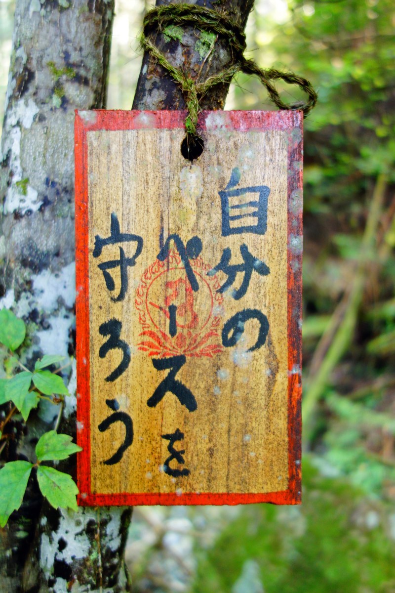 Shikoku 88 Temple Pilgrimage-116 Published September 20, 2014 at 3648 × 5472 in Japanese signs and their translations ← Previous Next → ‘Jibun no pace o mamorou’ – go your own pace. (kanji, katakana and hiragana)