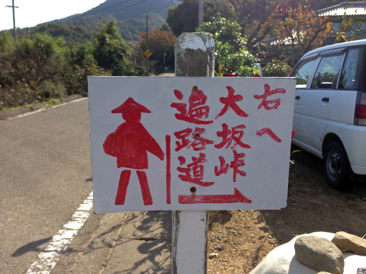Shikoku 88 Temple Pilgrimage-174 Published September 20, 2014 at 3264 × 2448 in Japanese signs and their translations ← Previous Next → ‘Migi e osaka touge henro michi’ – The Osaka mountain pass pilgrim trail is on the right (kanji and hiragana)