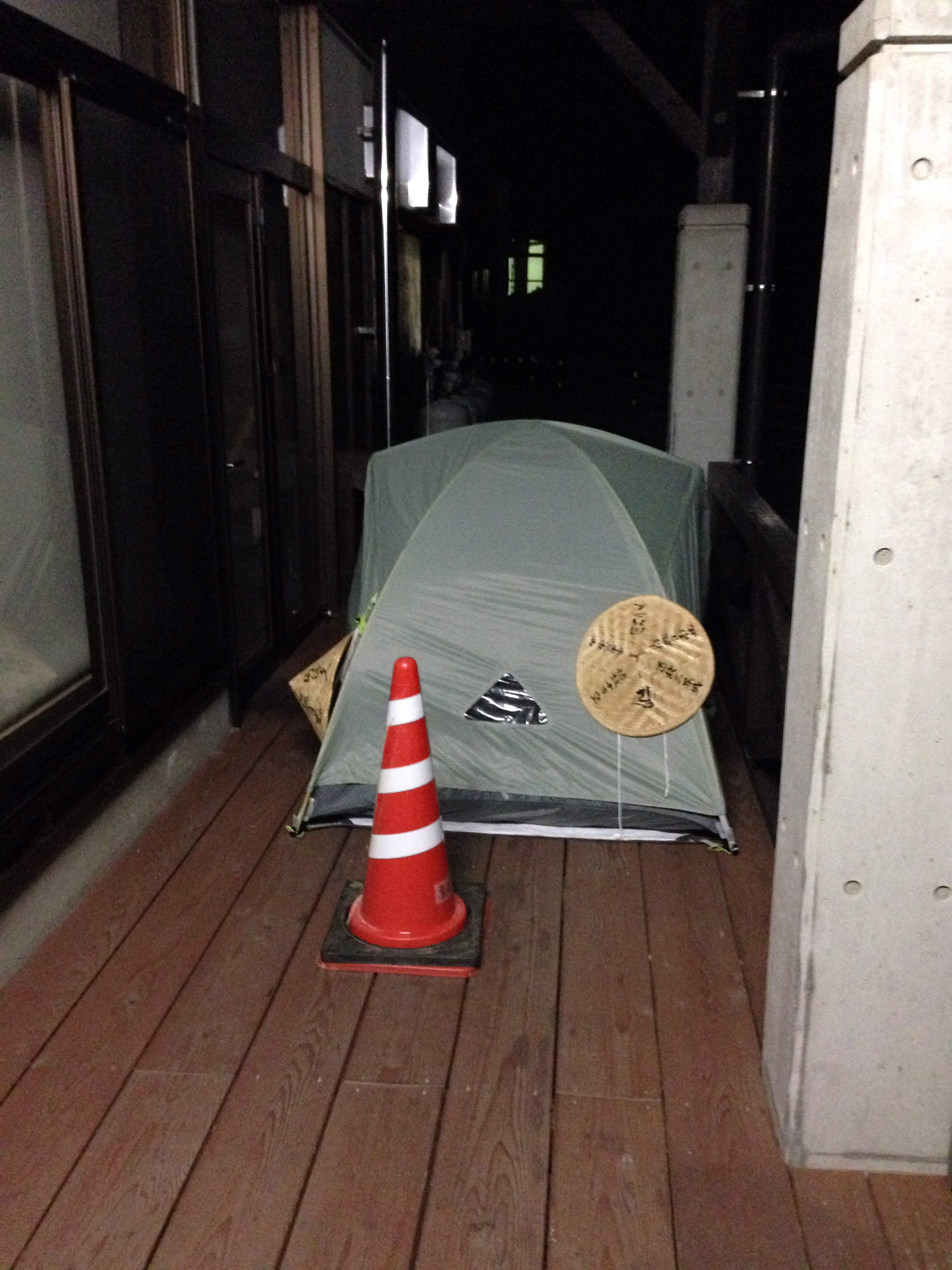 Shikoku 88 Temple Pilgrimage-0213 Published September 20, 2014 at 2448 × 3264 in Pilgrim accommodation ← Previous Next → Camping under the awning of a shop at Hinanosato services stop