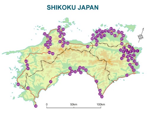 Shikoku 88 Temple Pilgrimage Published September 3, 2014 at 500 × 385 in What is the Shikoku 88 Temple Pilgrimage? Next → Shikoku Route Map – Image from my guidebook, ‘Shikoku Japan 88 Route Guide’ by Buyodo Co. Ltd