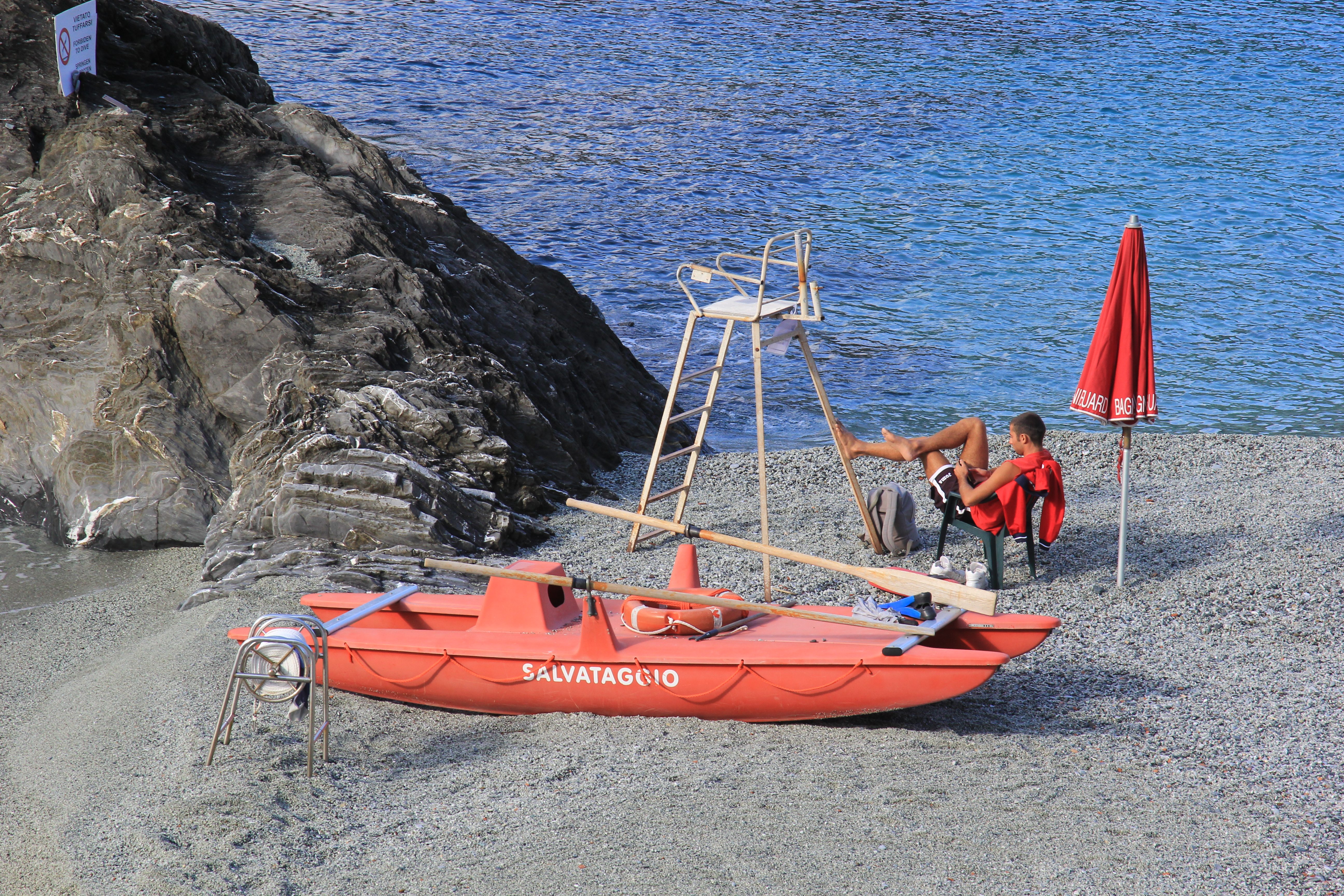 Cinque Terre-006 Published September 23, 2014 at 5184 × 3456 in Monterosso al Mare to Vernazza, 3.6km ← Previous Next → A lifeguard at Monterosso Al Mare