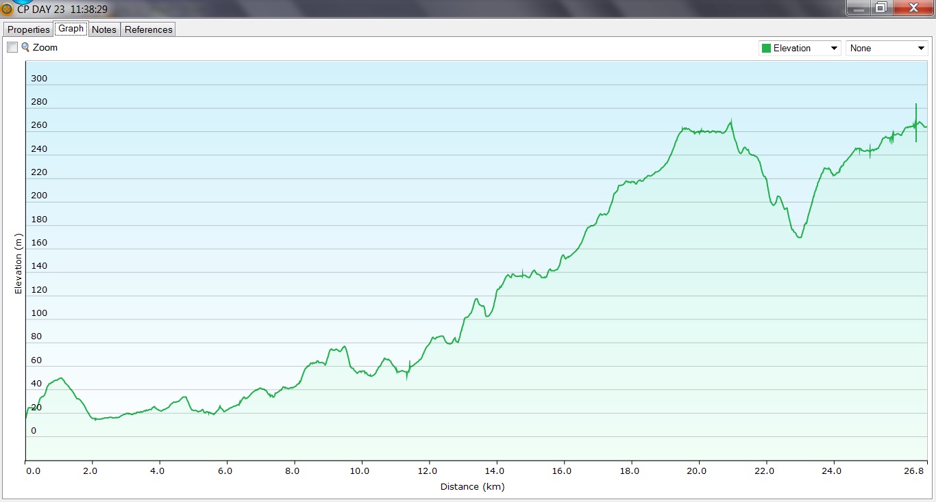 CP Day 23 graph Published October 26, 2014 at 1366 × 734 in Camino Portuguese – Elevation Profiles ← Previous Day 23, Herbon to Santiago de Compostela