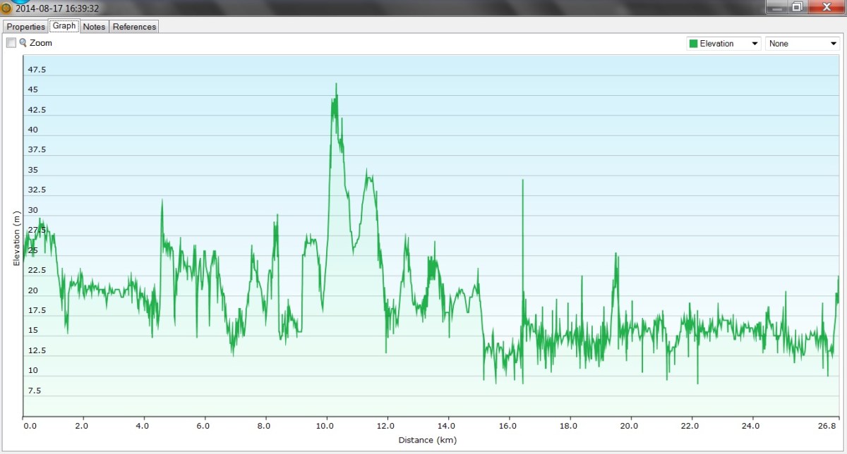 Day 5 graph Published October 28, 2014 at 1366 × 734 in Hadrian’s Wall – Elevation Profiles ← Previous Day 5, Carlisle to Bowness-on-Solway