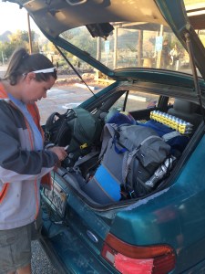 Today in a nutshell: More coyotes howling through the night, I got a sleep in as we had arranged a taxi to pick us up at 6:30am and take us back to the trail, a heavy pack carrying 6 litres of water and 4 days of food for a 32 mile stretch with a possible cache or a tank with dead mice, switchback after switchback, a wonderful surprise to see the 3rd gate cache at mile 91 fully stocked (thank you Trail Angels!), scorching heat, 1 snake (thin, black with a yellow stripe, possibly a garter snake?), spectacular views and a wonderful camp site just off the trail at mile 94.5 with even more amazing views!