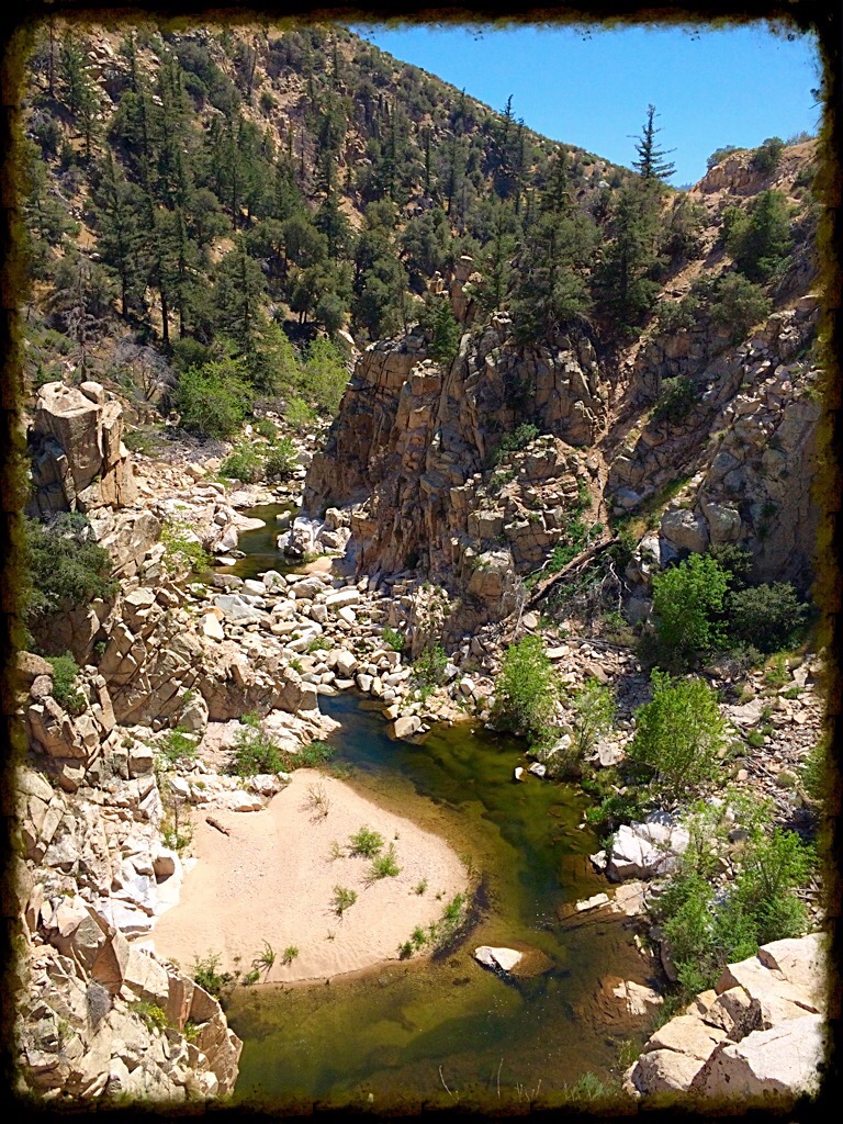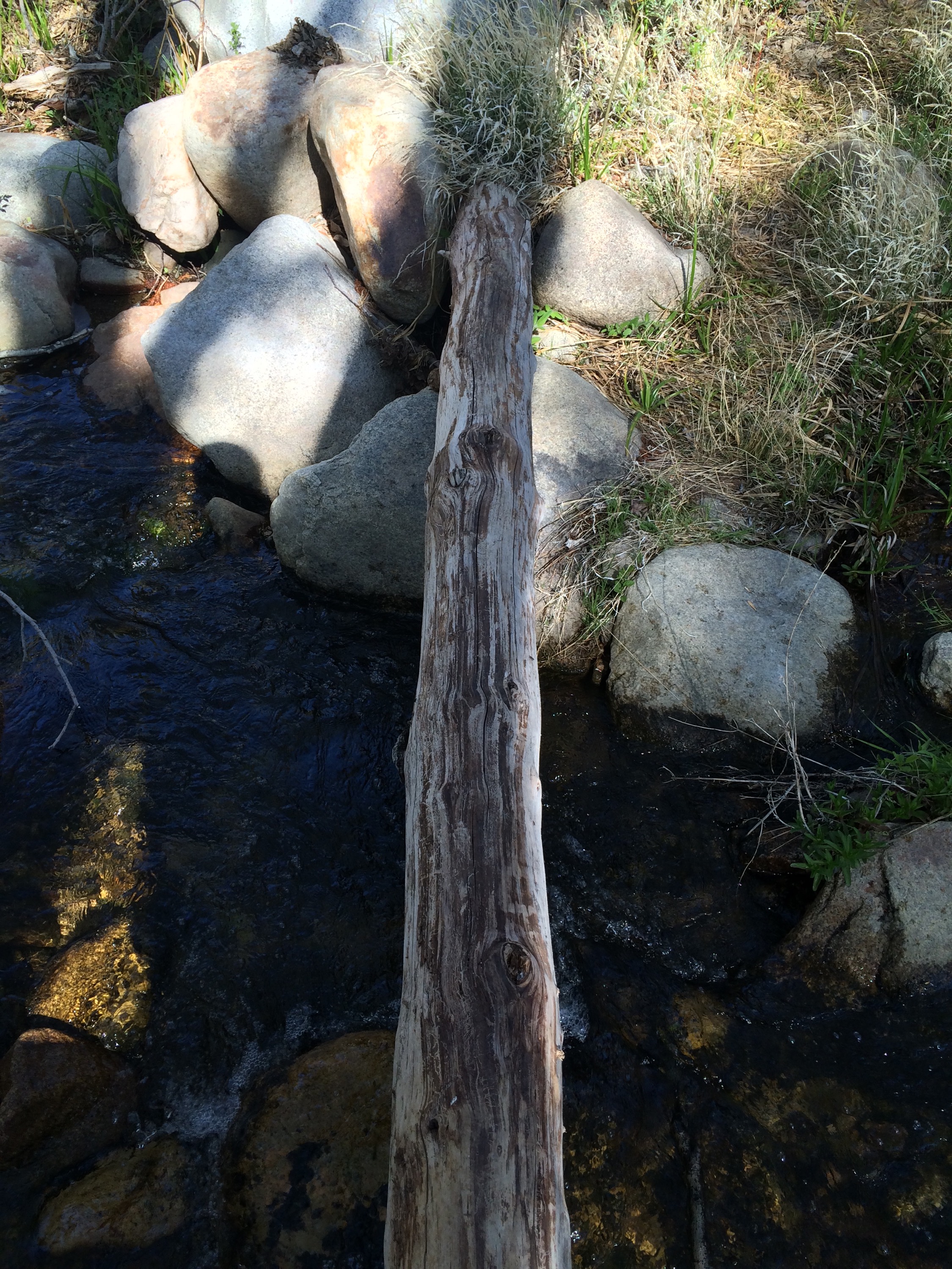 Today in a nutshell: Left just after 6, followed the stream, crossed it numerous times sometimes on rocks and once over a log. Filled up water at 2 crossings and soaked my feet in the cold fast flowing water. Beautiful scenery and terrific company at each break (Pam, Bangarang, Shaggy, Cool Breeze, Cuban B, Radish, Poca, Pot & Lid). One snake and one horny lizard. Passed the 300 mile mark. Arrived at Deep Spring hot spring with heaps of day tourists who had hiked in, today being a Saturday. Borrowed Bangarang’s shorts and went for a swim in the cold water then in the hot spring – it was hot!! Emerged clean 🙂 Had dinner at Deep Spring then left just after 7pm to continue along the trail and find somewhere to camp (there’s no camping within 1 mile of deep spring). Squeezed into a tiny space on the sand by the river next to Shaggy and Cuban B, falling asleep to the sound of the river and cicadas. Lovely warm evening and my longest day on the PCT yet at 24 miles.