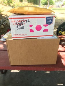 I walked into the campground, saw familiar hiker faces, set up my tent, paid my $15 fee, got laundry detergent and change for the washing machine, pucked up my resupply box and two packages from Howard (thank you!), picked up some hiker loan clothes (left behind by other hikers to wear while you shower/wash your clothes), dropped mine and JBird’s clothes into the washing machine and jumped into the shower.