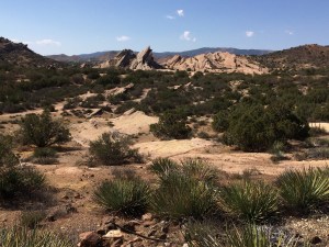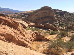 I left with Rowan & Cuban B around midday, and it was stinking hot – definitely not the best time of the day to start hiking! We caught up with Roxanne & PT and started hiking together through some incredible landscapes – boulders and caves and the Vazquez rocks where they had filmed lots of movies including Star Wars.