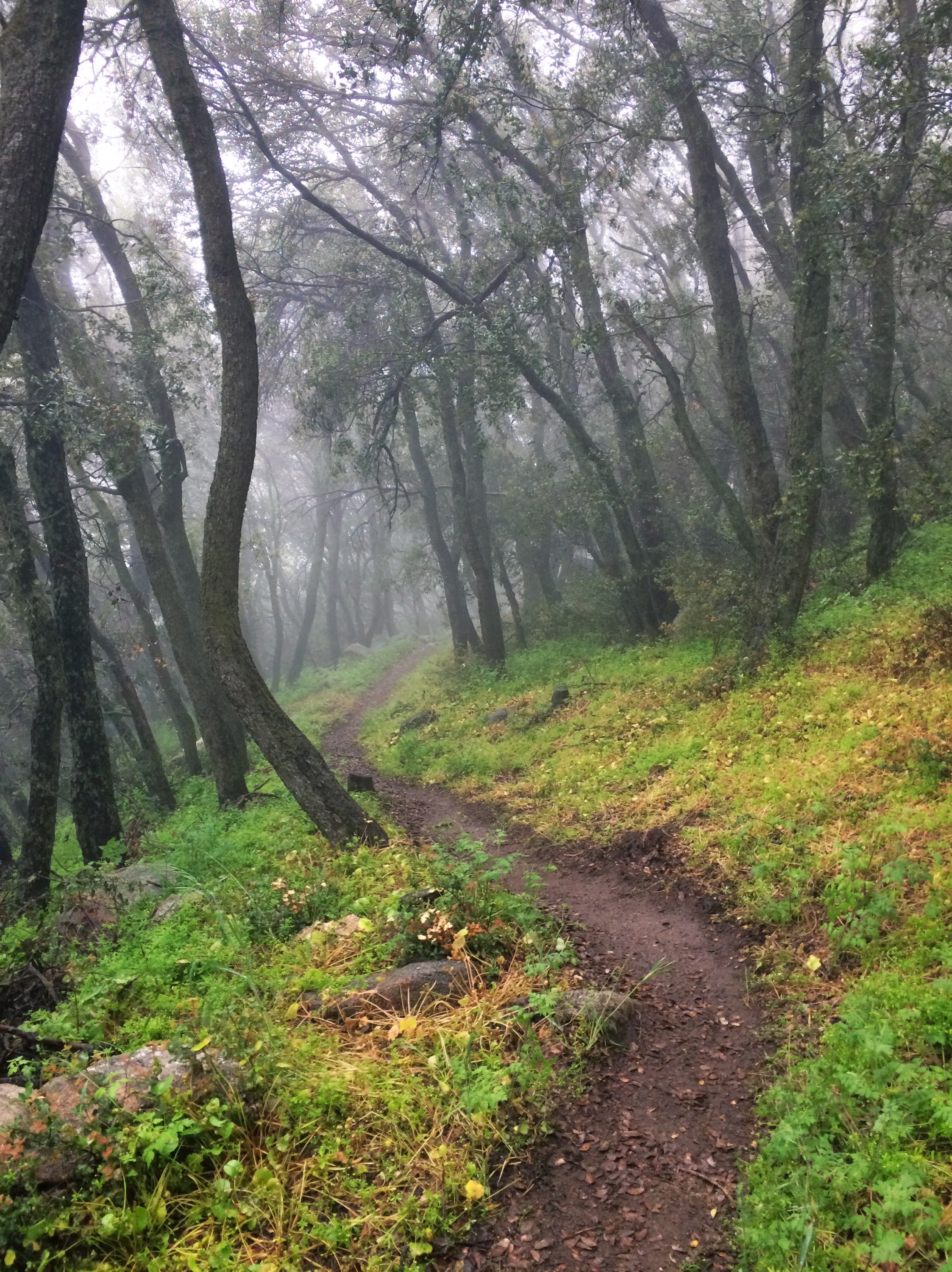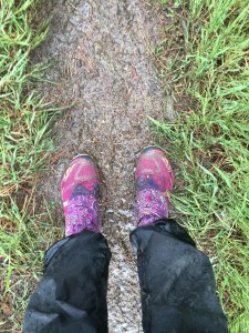 I woke up in mist and it stayed that way pretty much all day. It was beautiful walking through the woods with the colour of the wildflowers bursting through the whiteout conditions. I passed trees covered in fungi and I gradually got quite wet as the trees dripped water on me and my shoes brushed against the wet grass, it was cold too.