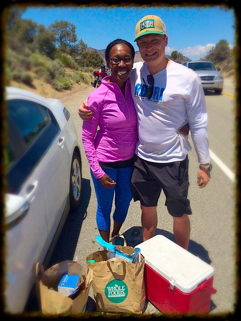 While I was sitting at the memorial (on the Memorial Day public holiday), lots of people pulled over in their cars, RV’s and motorbikes to see the memorial plaque dedicated to Joseph Walker. The first people to stop were Richard and Sharde. We started talking and they had spent the weekend camping by the Kern River. Patrick had hiked the John Muir Trail (JMT) and asked if I was hungry. Funnily enough, I didn’t think I had “hiker hunger” yet but it definitely kicked in on this stage and I just couldn’t eat enough food to ever feel full. They pulled out ice boxes and shopping bags full of food and told me to take whatever I wanted… I hesitated and they started piling me with potato chips, beef jerky, seaweed, cheese, ham, pita bread and a juicy mango. I was going to have a feast for lunch, thank you so much for your generosity Patrick and Sharde!