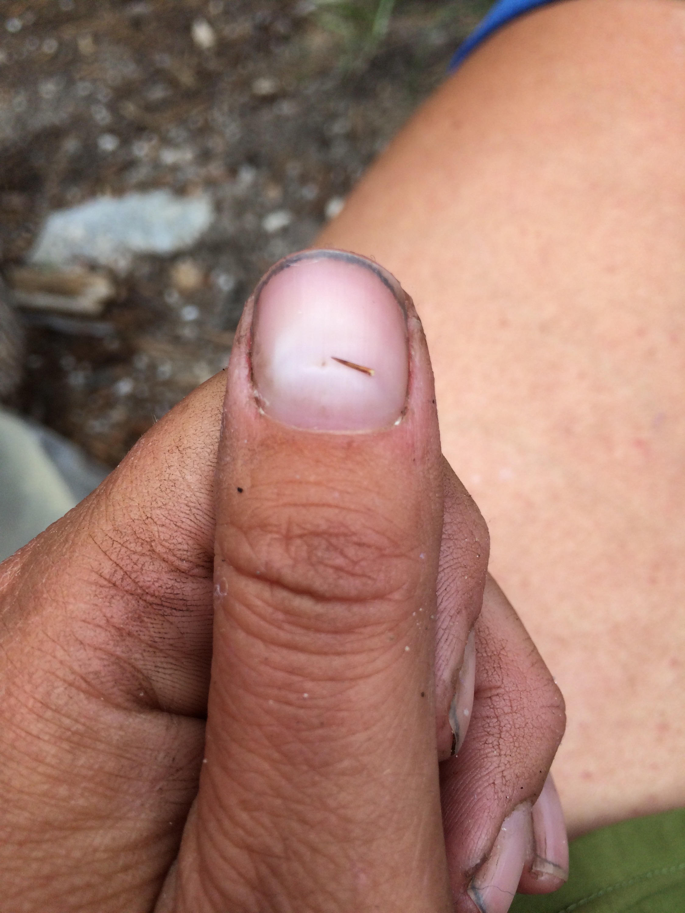 At lunch Shepherd noticed my grimaces as I tried again to remove the prickles and offered to help. He managed to pull the most painful one out and we were both surprised how big it was. The next few were smaller but still incredibly painful. I told the others I would stay and continue pulling out all of the prickles from my foot and I would meet them at the campsite if not before.