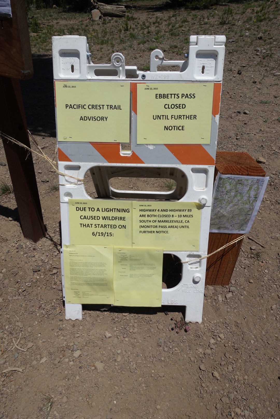 We had heard about a fire that was very close to this next section we were going to hike through and knew many people were going to skip ahead. The receptionist rang the PCTA and found out that the trail was still open but the highway over Ebbetts Pass was closed. We looked at our maps and decided that if the trail was still open we would go for it, as long as the wind kept blowing the smoke the other direction and not ours. We came up with a strategy to have a short day today, then tomorrow hike up until just before Ebbetts Pass (where the highway was closed) and hopefully be able to camp without too much smoke, then the next day walk through the entire smoky area and get to the other side of it.