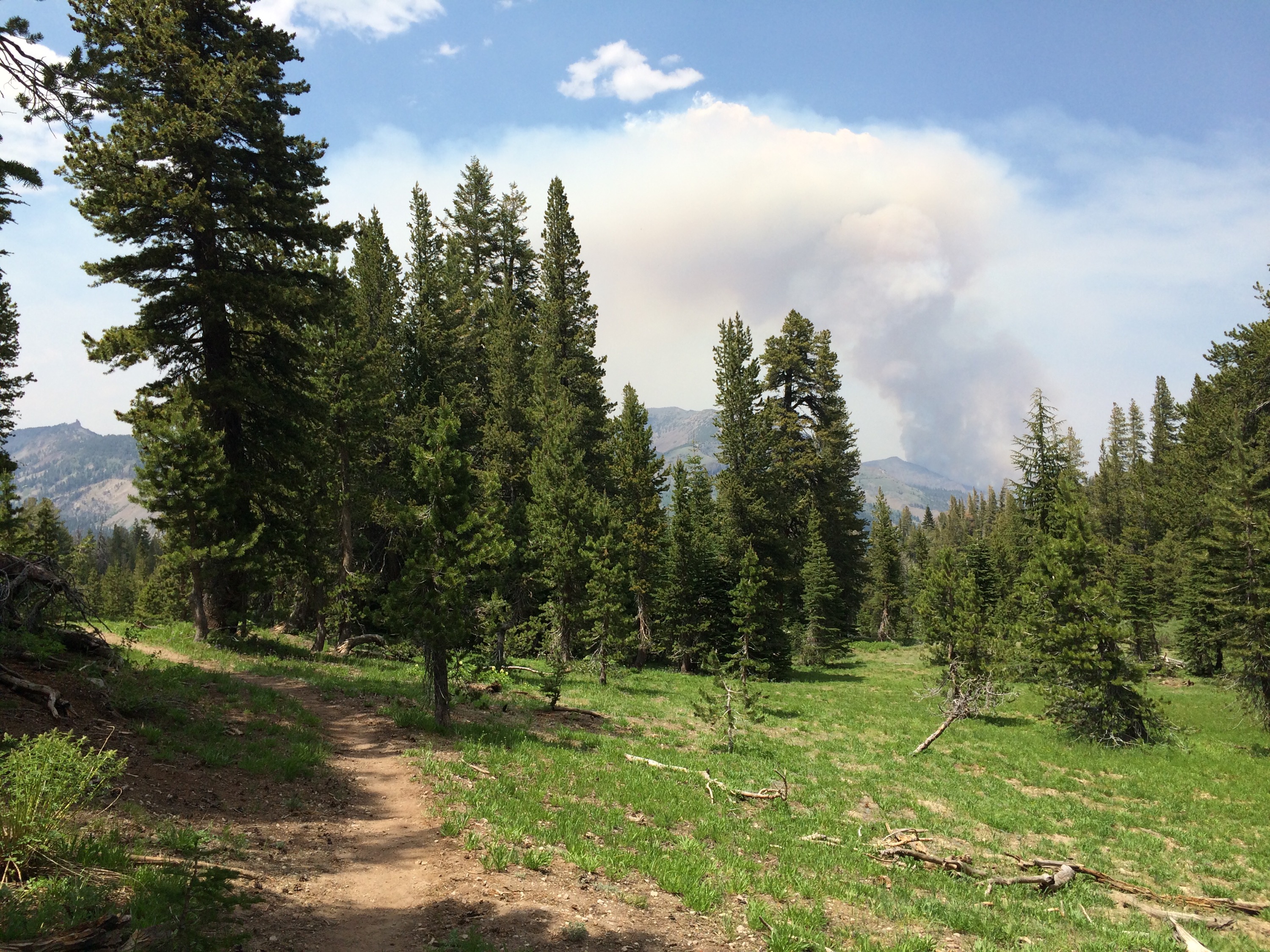 We slept in until 6:40am, no hurry because we were planning to camp before Ebbetts Pass where the fire is burning so as not to be too smoky.