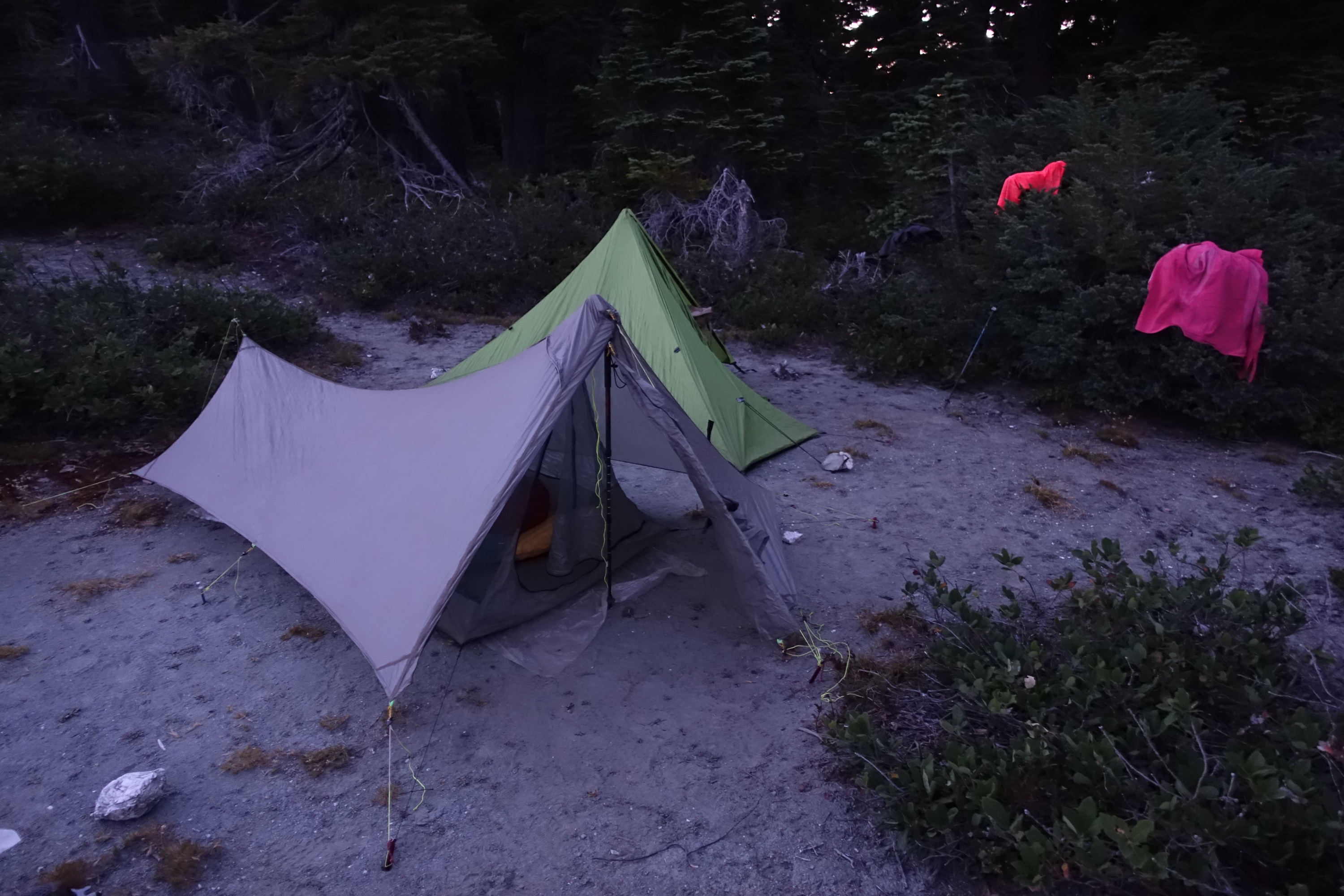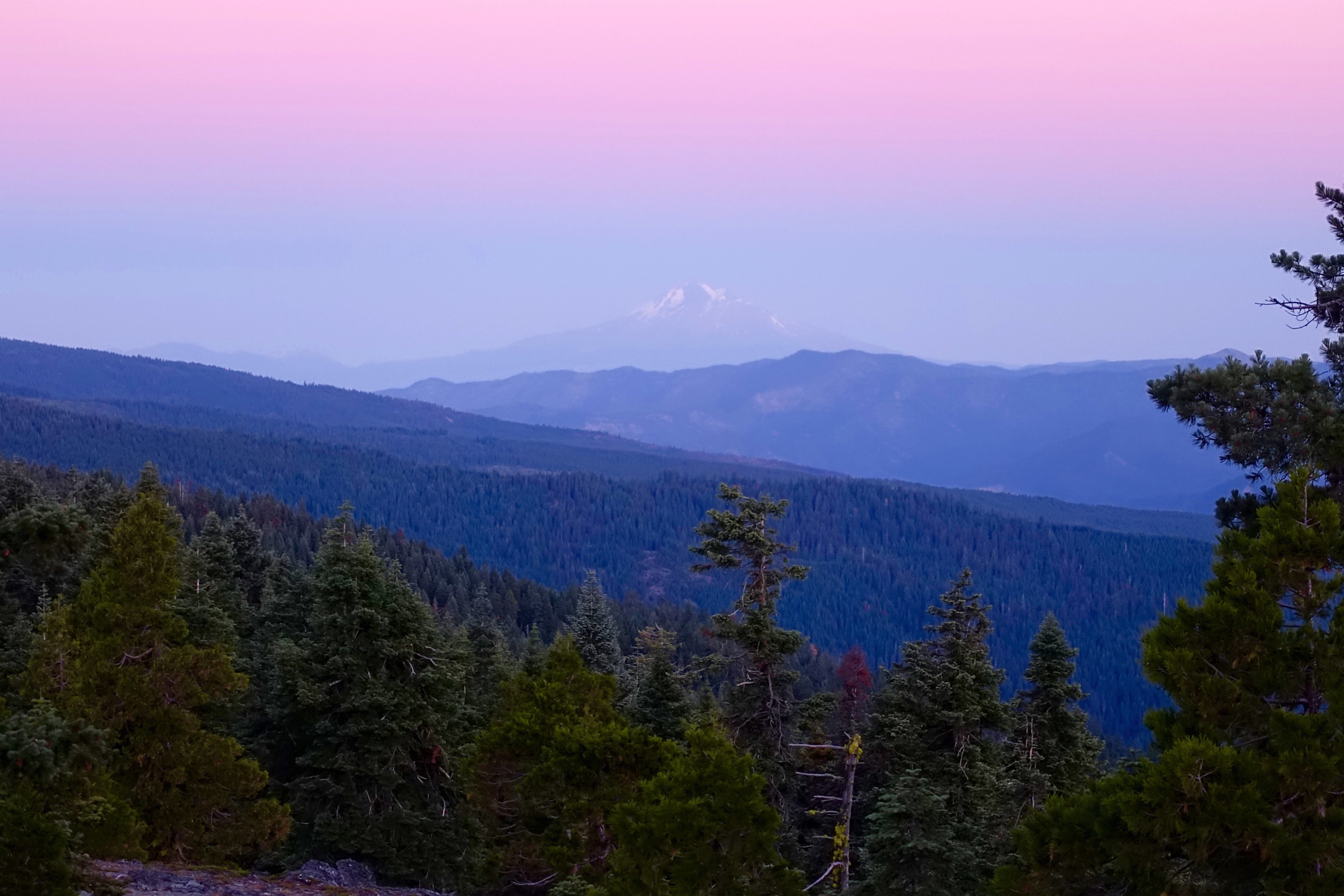We had beautiful views of Mt Shasta and a gorgeous sunset and found a terrific camp site on a saddle just before it got dark.