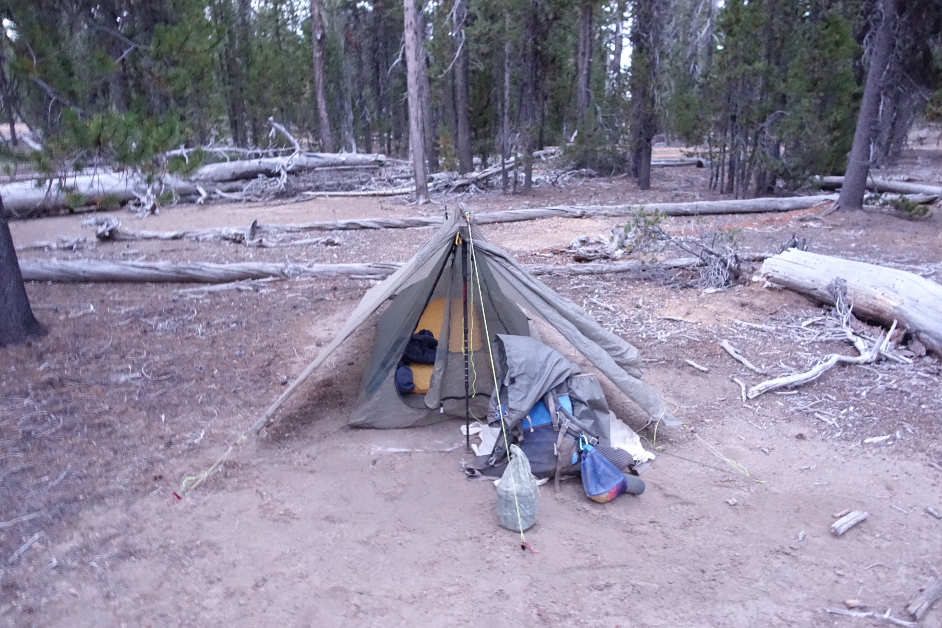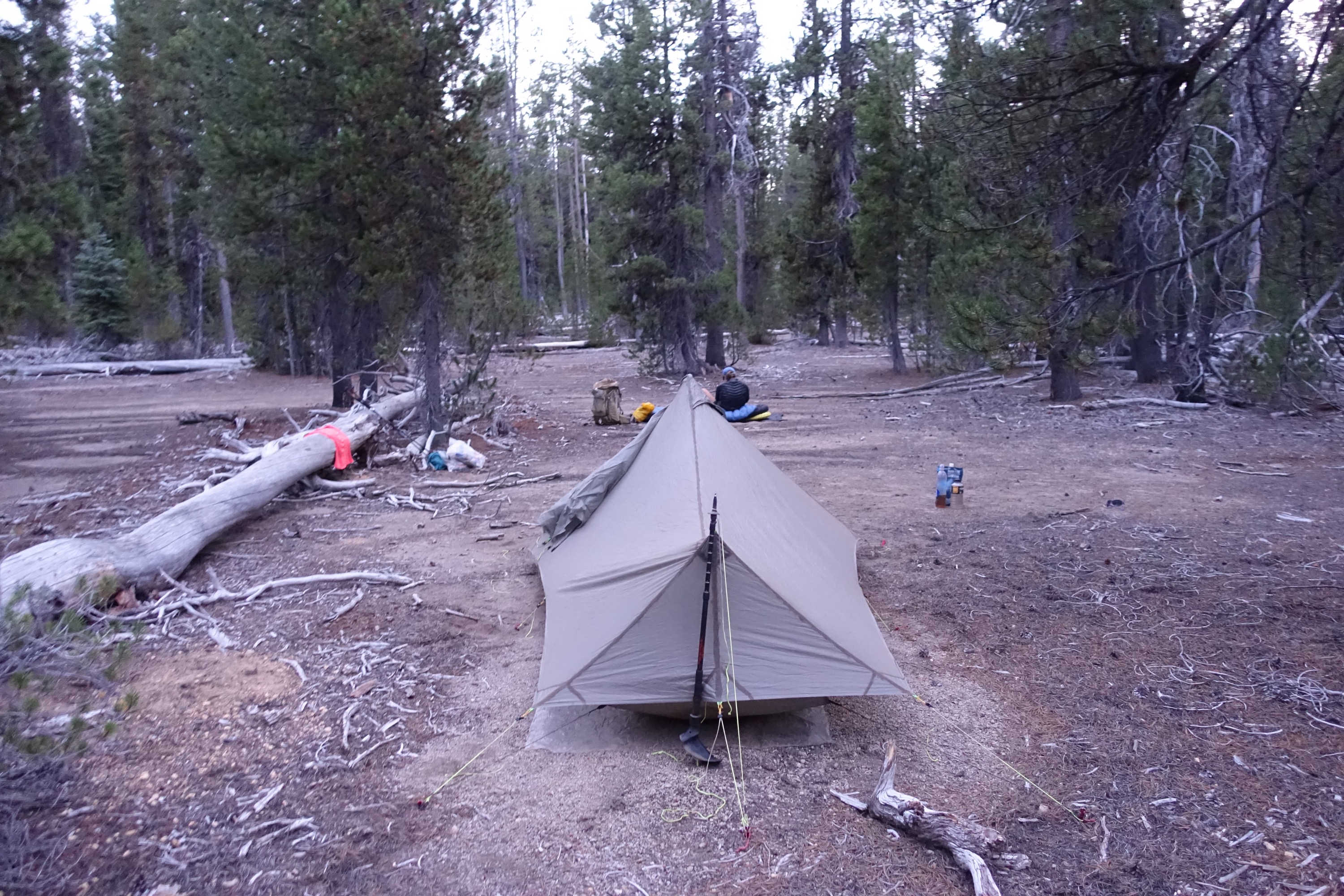 We got moving again and had a late lunch at the Six Horse Spring around 3pm. The spring was a 0.8 mile return trip down a steep hill but great water (always prefer a spring) so it was worth the walk. We decided to have dinner here instead of lunch using water to cook so we wouldn’t have to carry the extra water because the next water source is 16 miles away on the Oregon Skyline Trail which is an alternate route.