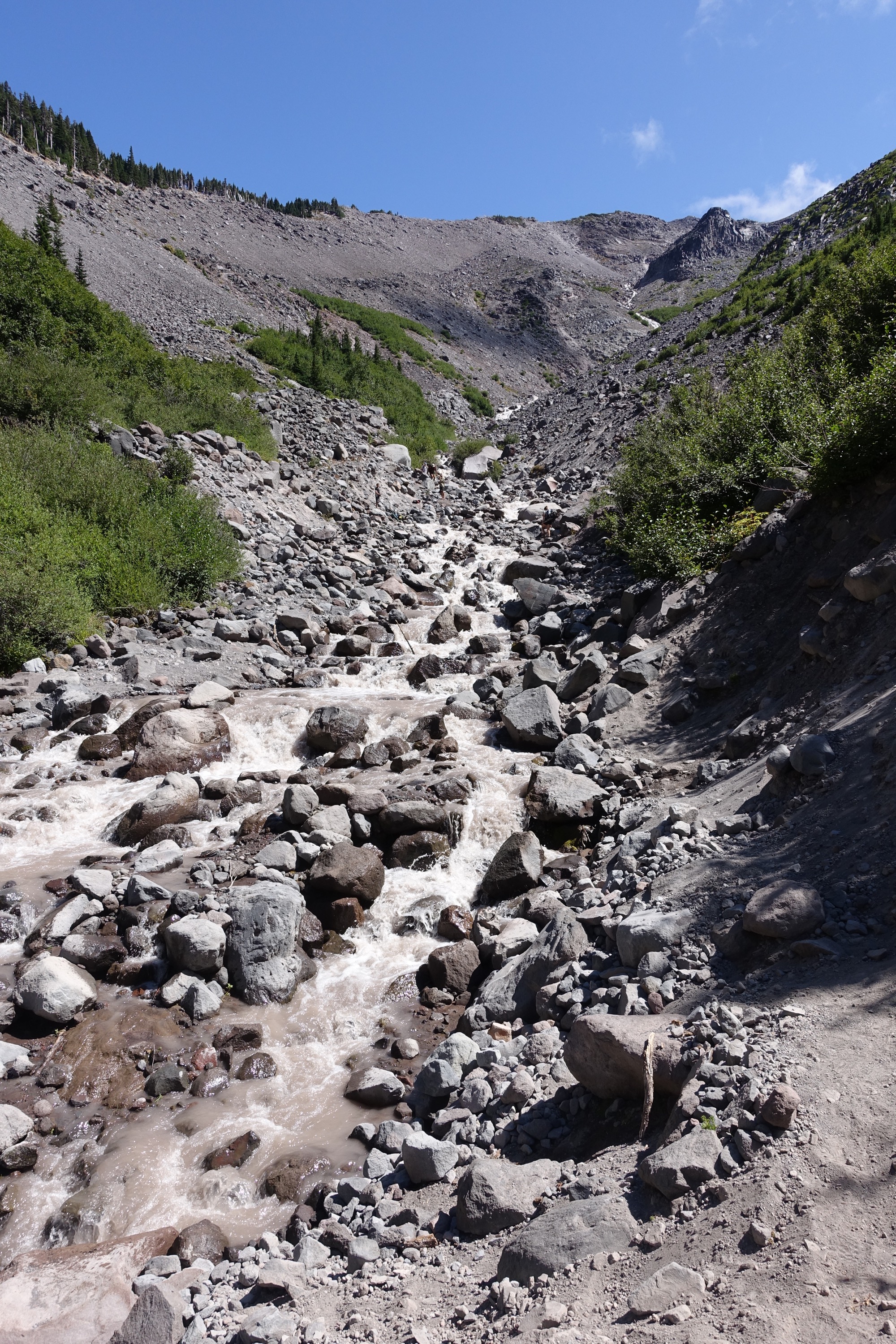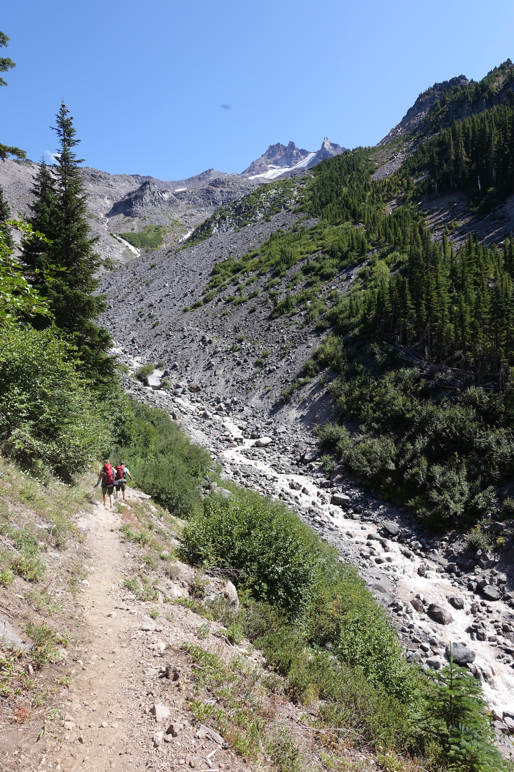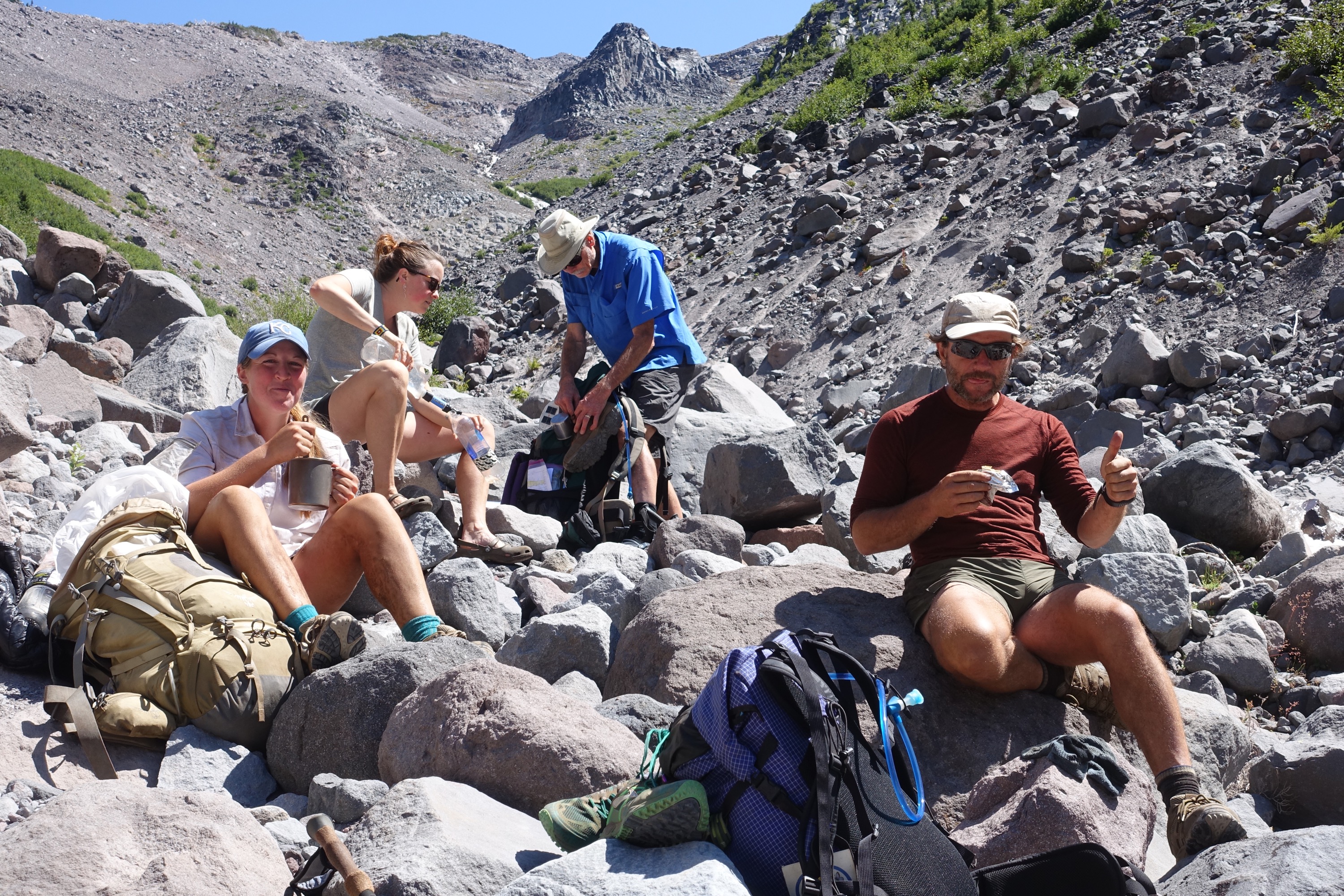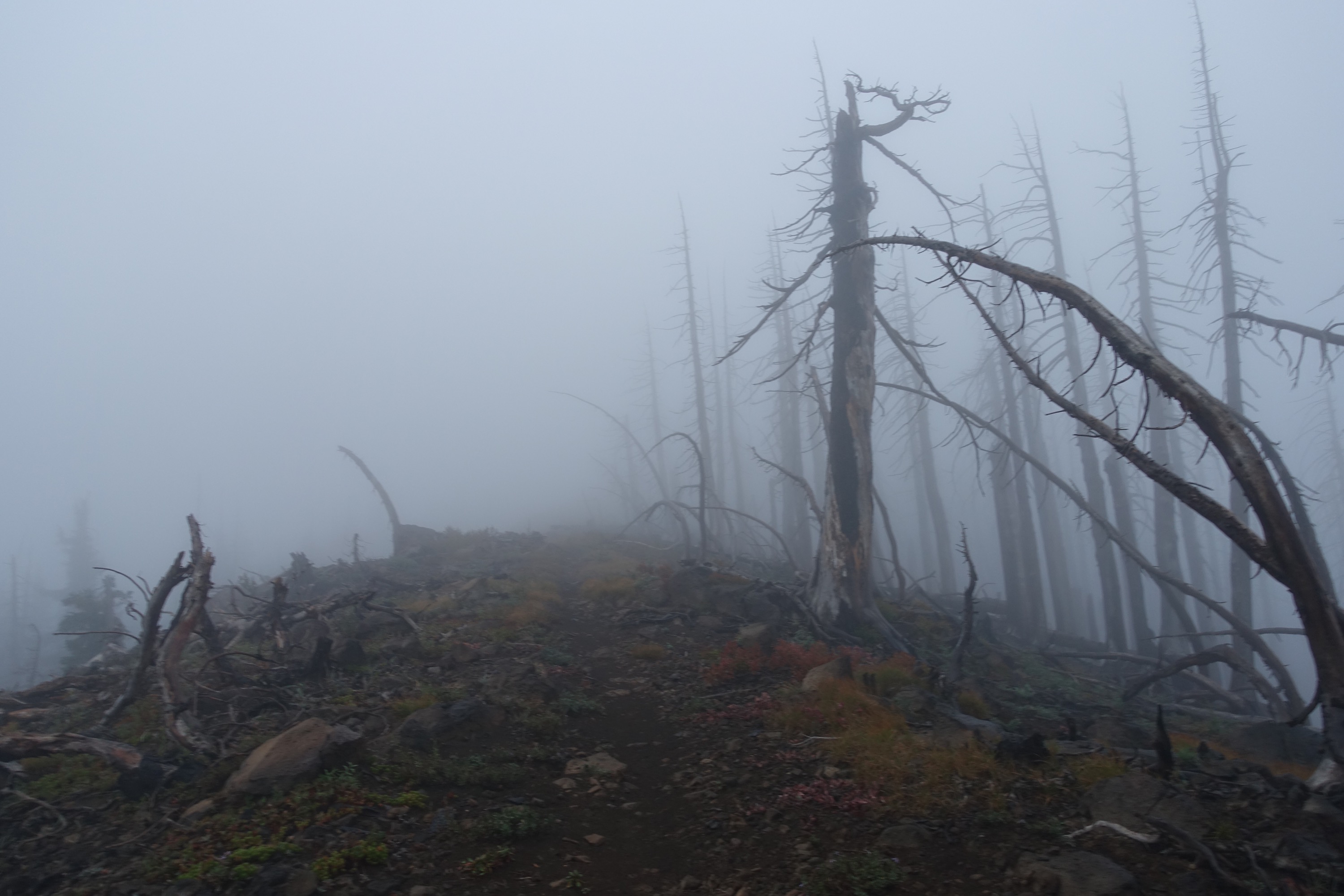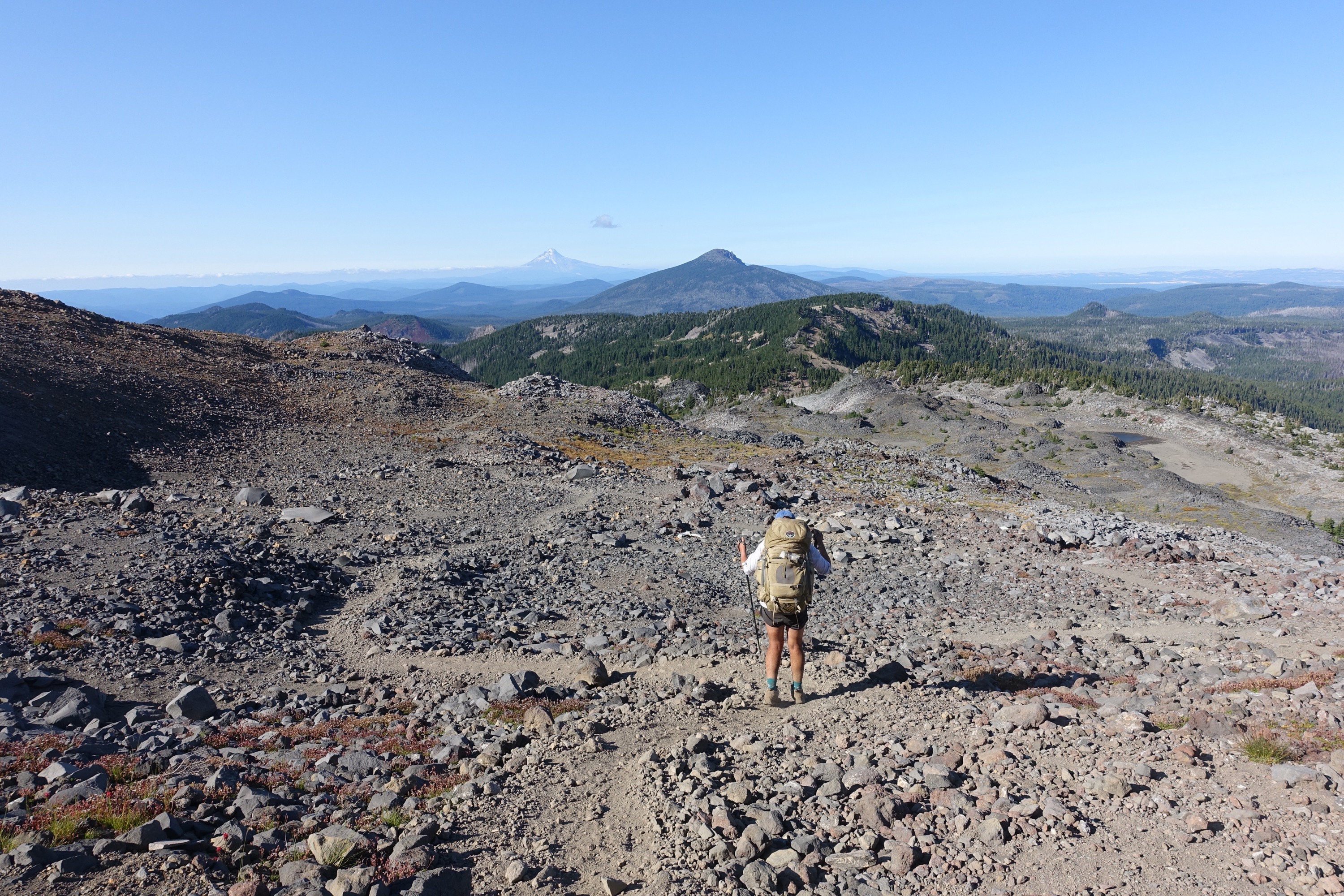 After Russell Creek we started an 8 mile climb uphill, me with wet feet. My wet feet quickly became sandy and muddy… I think I’ve forgotten to mention that the PCT in Oregon is either made up of sand/dirt or lava rock. The dirt played havoc with my wet feet and I could feel hot spots starting all over my feet… I thought about changing my socks but the alternative was a slightly less wet pair that I had washed at Shale Lake earlier in the day.