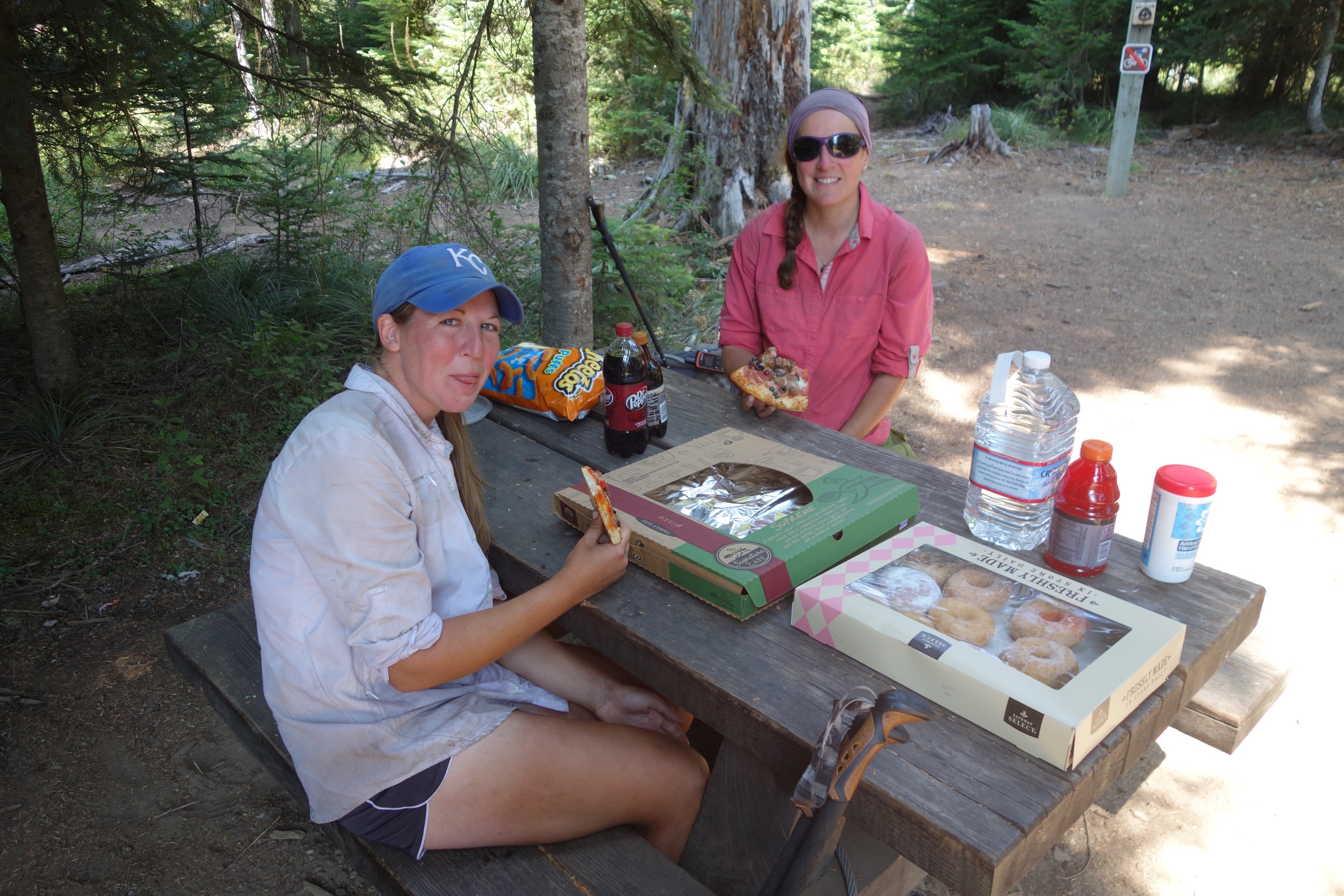 We stayed for a couple of hours then said goodbye and continued on the last 11 miles towards Timberline lodge. After 5 miles we came to highway 35 where Shepherd had been met by friends and they had brought trail magic too. We sat down and chatted with his friends while eating donuts and drinking beer… Sometimes you just gotta go with the flow!