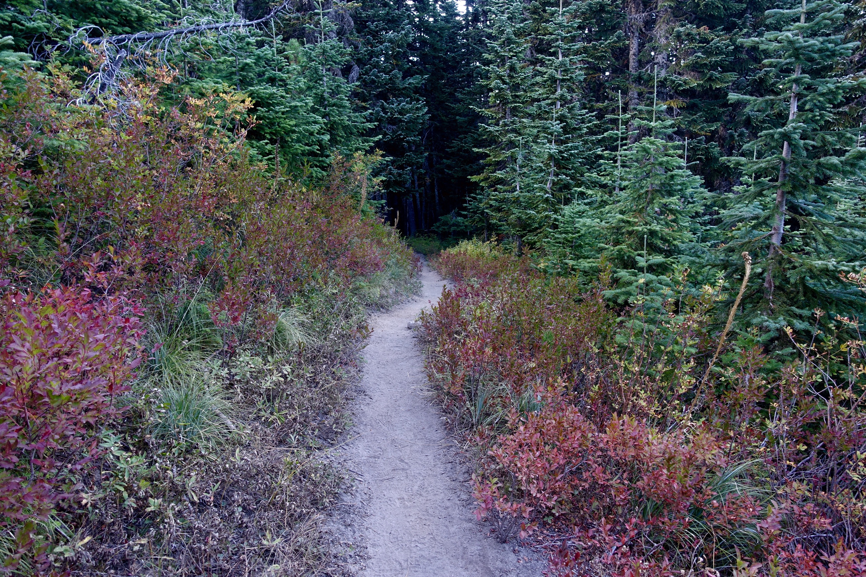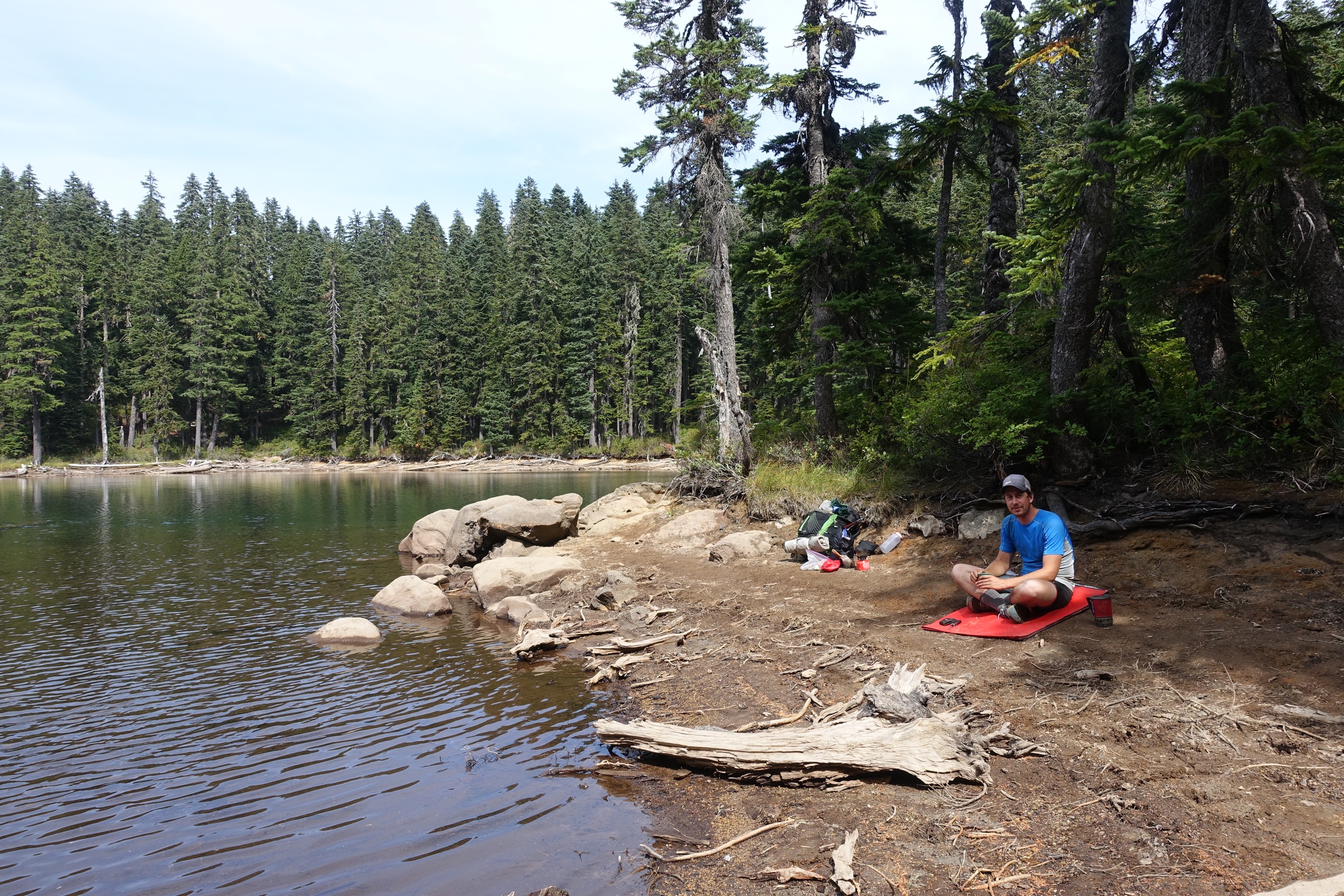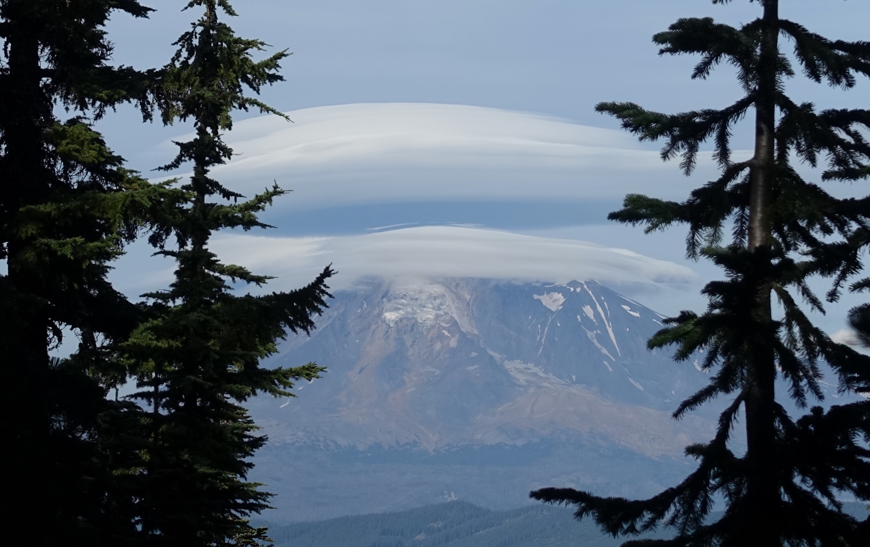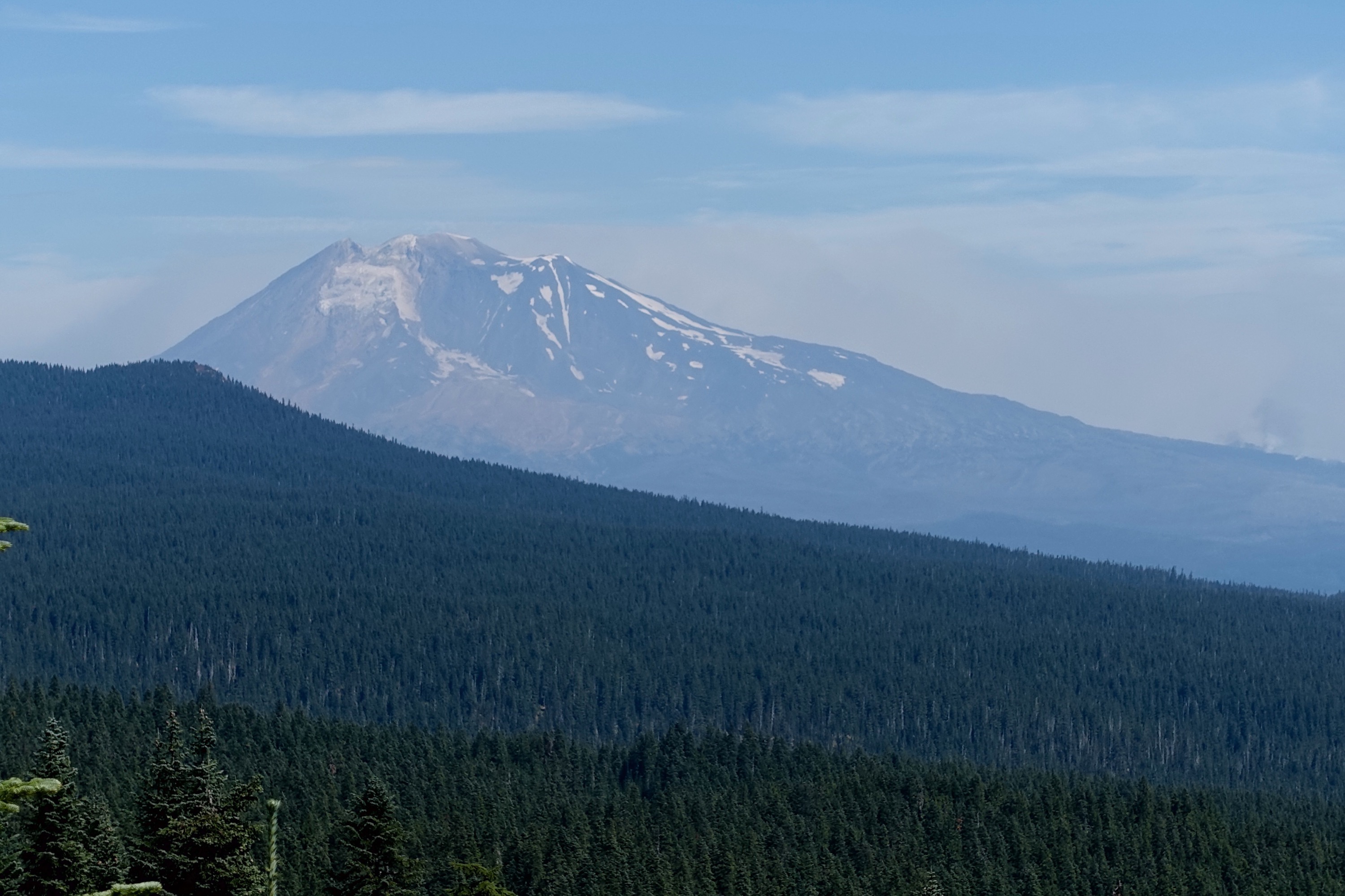 We got phone service while looking at that above view of a cloud-covered Mt Adams and saw that there’s a storm coming in this weekend with lots of rain and gale winds. The rain is terrific for Washington but hopefully the winds don’t make the fires any worse and hopefully there’s no lightning to go along with it – the cause of most of the current fires. I don’t mind the rain so much except when it’s over consecutive days which makes drying out a tent etc quite tricky. But we started thinking about where we would be on Saturday when the bad weather hits and we would be starting the Goat Rocks and Knife’s edge – 2 very scenic parts of the trail but completely exposed and probably not so much fun in a storm. We’ll try to check the forecast again tomorrow.