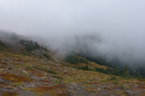 I went back to sleep and woke again at 7, then 8am. The weather wasn’t getting any better, in fact it looked like it was getting worse. We decided to wait another hour and see if anything improved once the sun was well and truly up… But no. Ladiesman and DLux walked past at about 9am, head to toe in wet weather gear and not expecting the day to get any better. Their plan was to camp at the base of knife’s edge and cross it tomorrow morning in hopefully better weather. It didn’t sound like a bad plan.