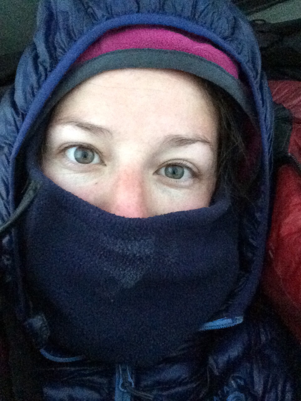 It was so so cold last night. I slept in everything I have but never truly felt warm and the snow continued falling on my tent well into the night. No-one stirred until 7am and even then no-one wanted to get up, it was just too cold! It seemed bright outside my tent which I hoped was a good sign that today would be a nice day, free of rain and snow!