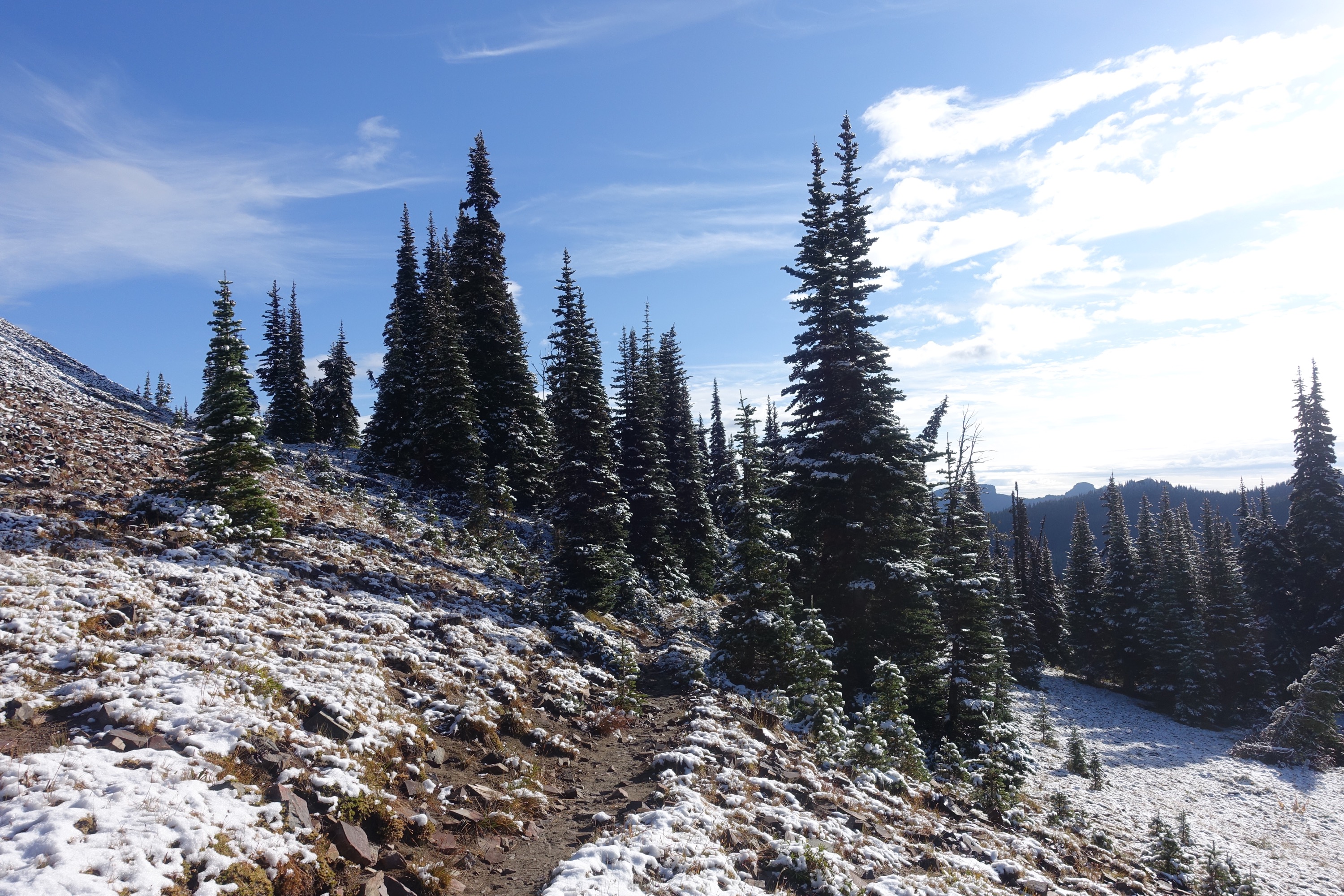 I eventually got up, put on yesterday’s wet socks (actually the past 4 days), made a hot coffee to drink in between packing up my tent and left at 8:30am. My rain jacket, gloves, shoes and socks were all still wet but the sun was out, it felt like I was at a ski resort on a bluebird day and I hoped everything would dry.