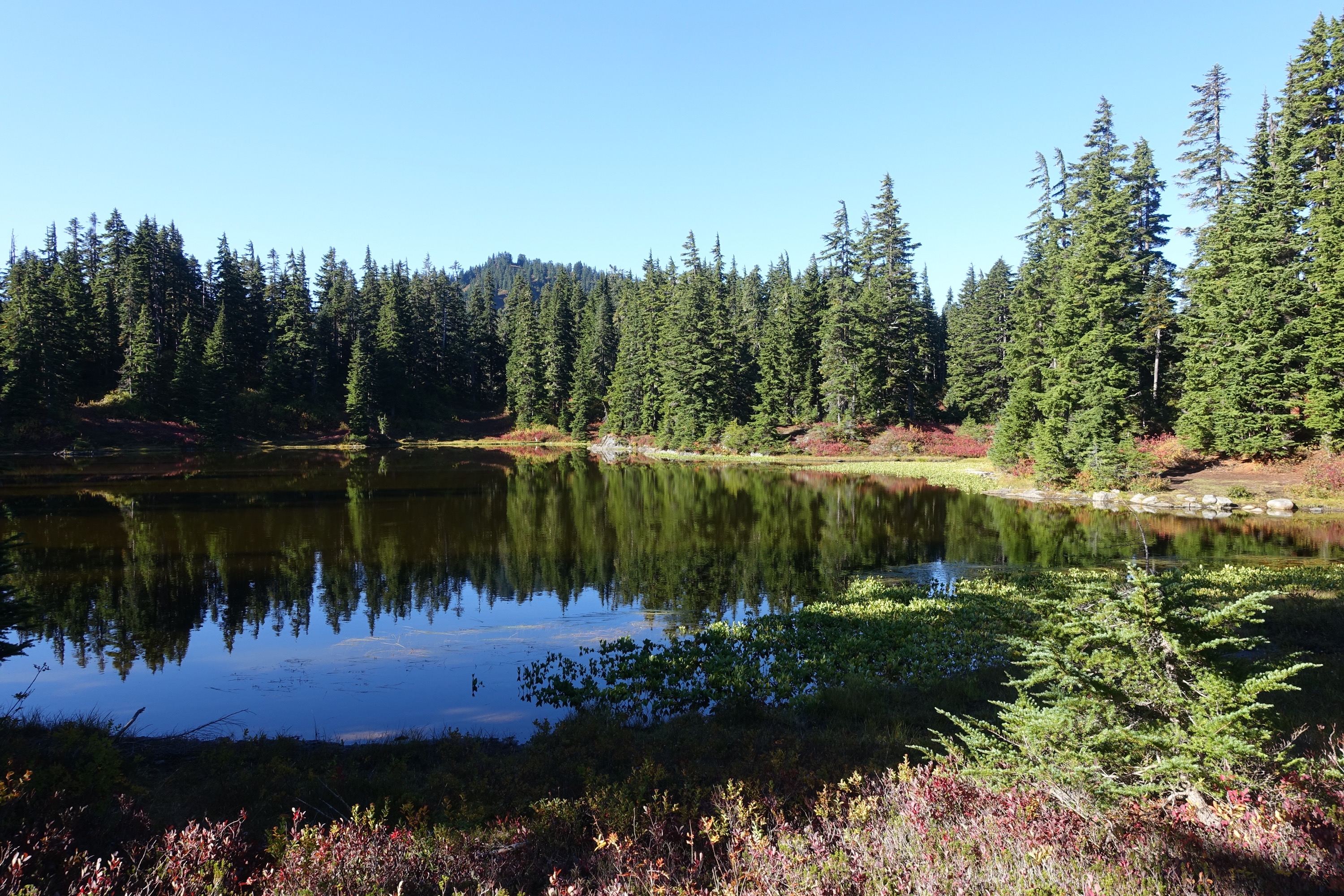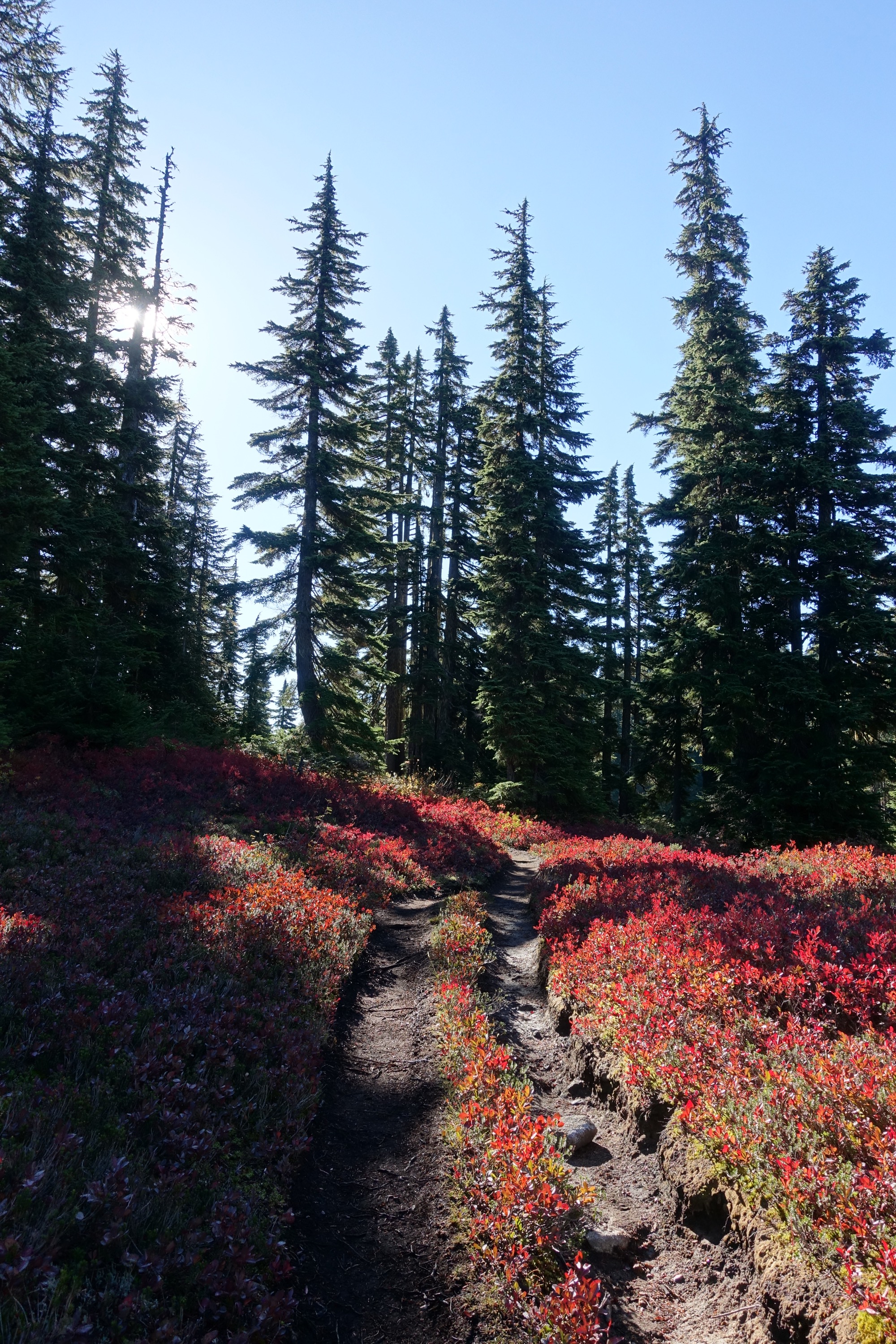 It was a beautiful trail passing autumn foliage with lovely mountain views. The trail was a mudslide in parts but all in all fairly easy going into Stevens Pass. I caught up to Zigzag and stopped to eat a snack with him overlooking a beautiful lake in the warm sunshine… He commented on my hat that I don’t really wear unless I have to and I told him I couldn’t find my sunglasses this morning, in fact I thought I had rolled them up in my wet tent and I only wanted to unroll it once, once I arrived at Stevens Pass – hopefully they wouldn’t be too crushed if they were in fact rolled up inside my tent!