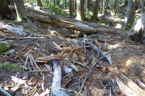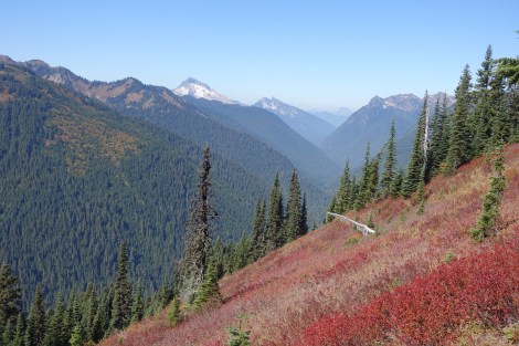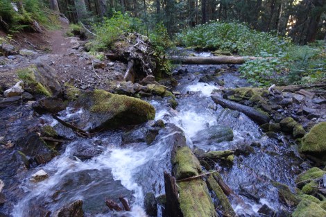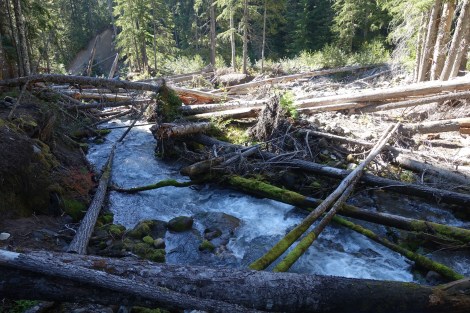 Just after the last ford across the broken bridge, I came up behind Teflon… I really didn’t think I would catch up. We chatted and walked together a while but I had to keep going as there was no mention of a campsite for another 4 miles and it was getting late. Teflon was going to stop when she found a small piece of flat ground and it’s easier to do this as one person with one tent but not two. I hope I see her again in this section, if not I’ll see her in Stehekin. My hurry is that I’m trying to beat the bad weather that’s forecast, this trail is scary enough in bright blue sunshine (and I’ve already fallen once), I don’t want to see what it’s like in the rain!