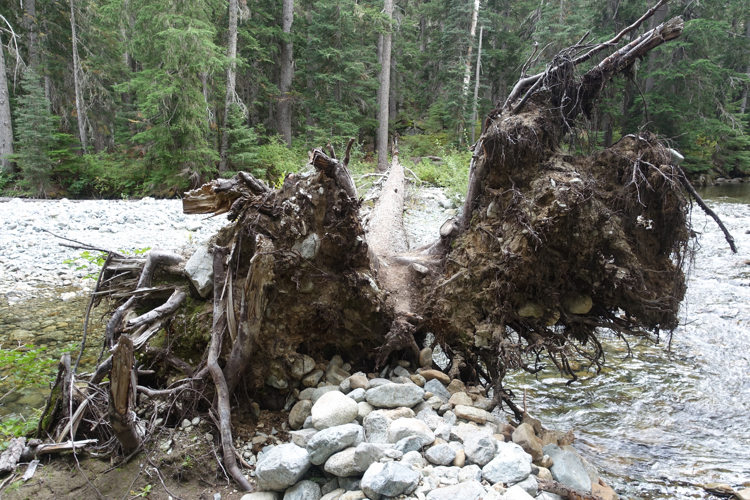 Around 3:30pm I came to a campsite with a sign warning of falling trees and advising not to camp there. I hadn’t eaten lunch but there were a few big fallen down trees that looked like they would make a good seat so I sat opposite the warning sign on a log to eat lunch… A bit silly really! I ate a tortilla in peace but as I was starting to pack up a massive tree branch fell of the tree right behind me… The noise was so loud but I had no idea where it was coming from, I looked up and then finally saw the branch as it was in mid-air. It landed about 2 metres behind me. It definitely would’ve knocked me out or pinned me under had it been that little bit closer… Close call!
