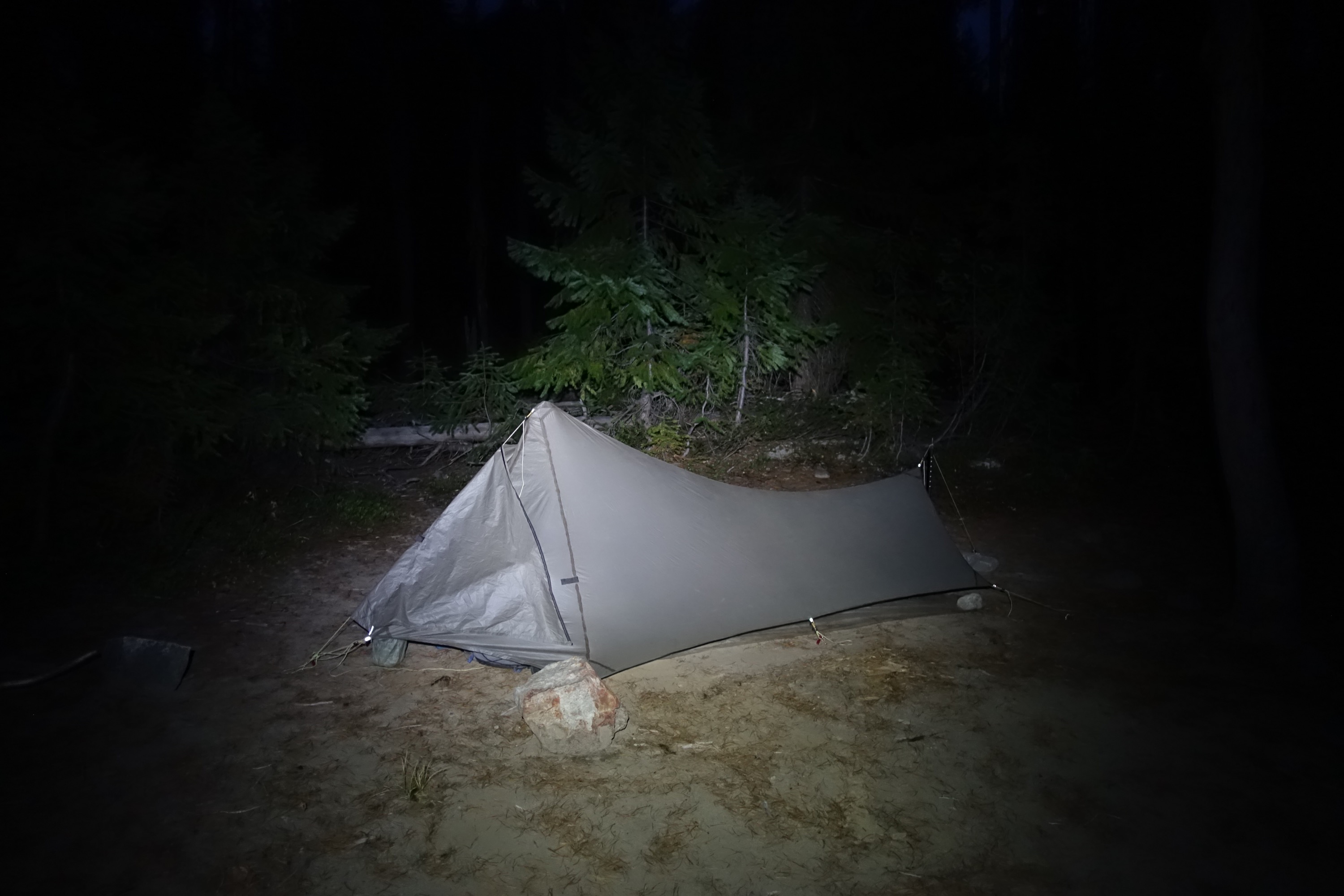 I camped by myself in a large campsite. I set up my tent and was eating dinner when the wind picked up and the trees surrounding my tent were swaying and creaking. 2 trees had half fallen and were being held up by other trees but if the other trees swayed in the wind too there was every chance I could end up with a few trees on top of my tent, not ideal. I didn’t want to but I took down my tent and moved it to a clearer spot but the reason I never set it up there in the first place was because of the downward slope it was on. If I get crushed by a tree tonight on this uncomfortable slope, then I guess that’s fate!