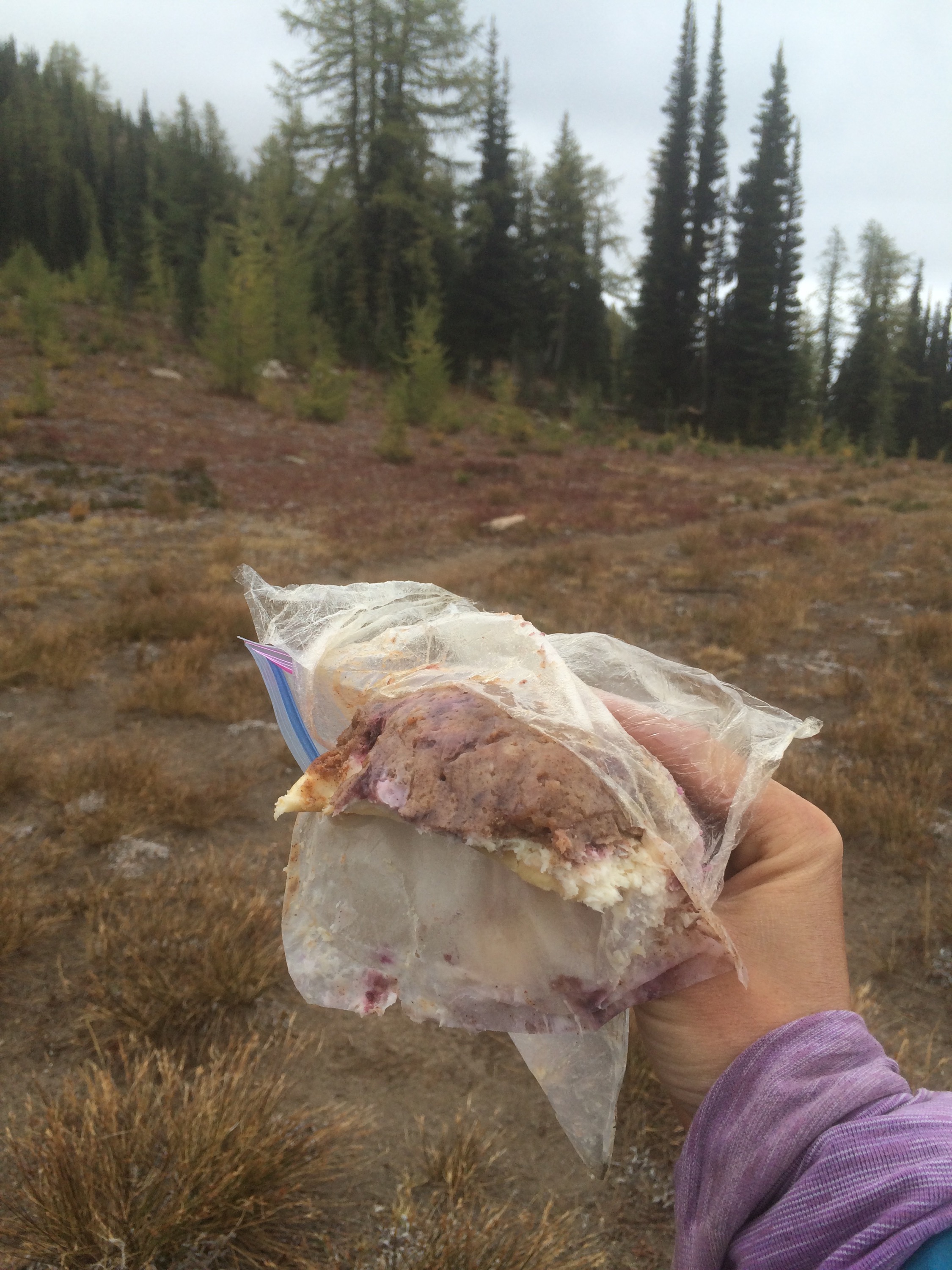 I ate the delicious kuchen on top of Methow Pass, it was so good but squished and sticky so I had a wet wipe on hand too.
