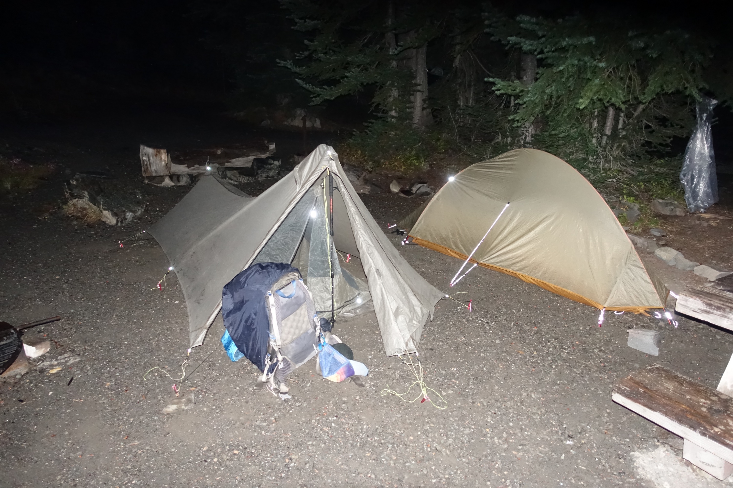 We arrived at Harts Pass campground at 7pm in the rain and had grand plans on sleeping in the toilet there (to stay dry and not get our tents wet again!) But when we arrived there were quite a few cars and other campers and only one toilet, as well as a sign on the toilet saying you couldn’t sleep there, you had to pay $8 for a campsite! I knew I only had $20s and Rainbow wasn’t sure what she had, the ranger saw us and came out to reiterate how we had to pay or could keep walking and they thought there was another flat spot a few miles down the track but this would mean walking in the rain and the dark and we were both pretty tired, Rainbow had walked 28.5 miles to get here and me 27. Rainbow thought she might have the right money but her purse was at the bottom of her pack so we agreed to stay and once she had set up she would be able to check.. Luckily she had exactly $8 in change, I owe her a drink at Manning Park!