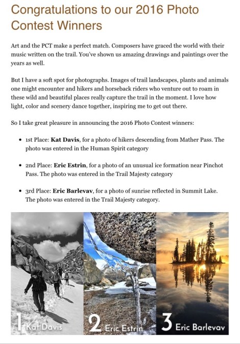 Congratulations, Kat! Great pic – in fact, there were any number of your PCT pictures that could have won.