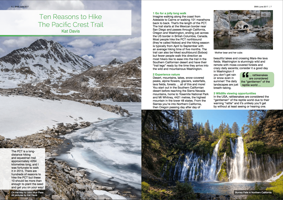 Bushwalk Australia Magazine – PCT article by Kat Davis Published June 8, 2017 at 2614 × 1852 in Bushwalk Australia – PCT article ← Previous Next →