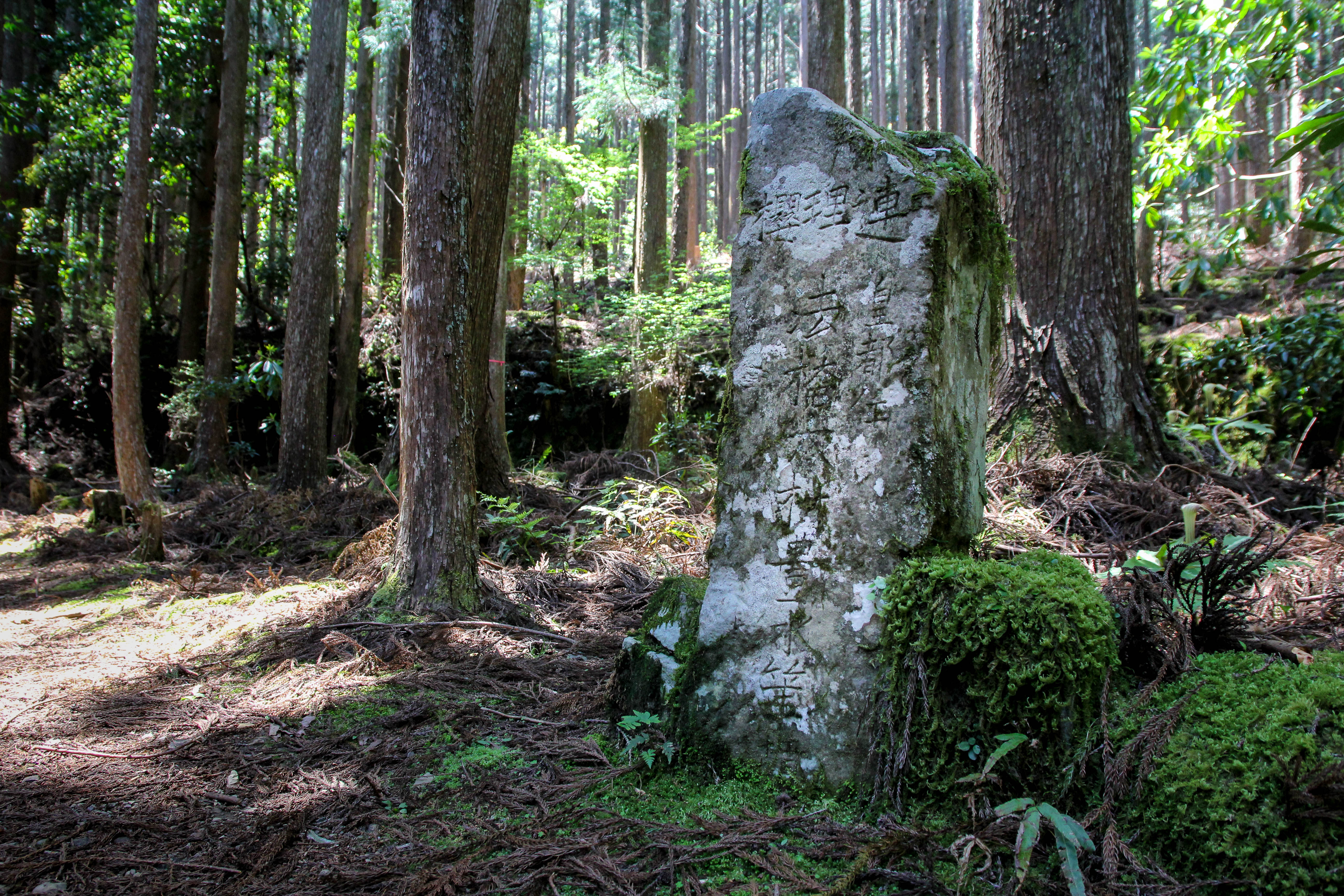 Old stone monument on the Kogumotori-goe trail Published June 6, 2017 at 5184 × 3456 in Nakahechi – Day 5 – Koguchi to Ukegawa along the Kogumotori-goe trail then onto Hongu Taisha and Yunomine Onsen (Dainichi-goe) ← Previous Next → Old stone monument on the Kogumotori-goe trail