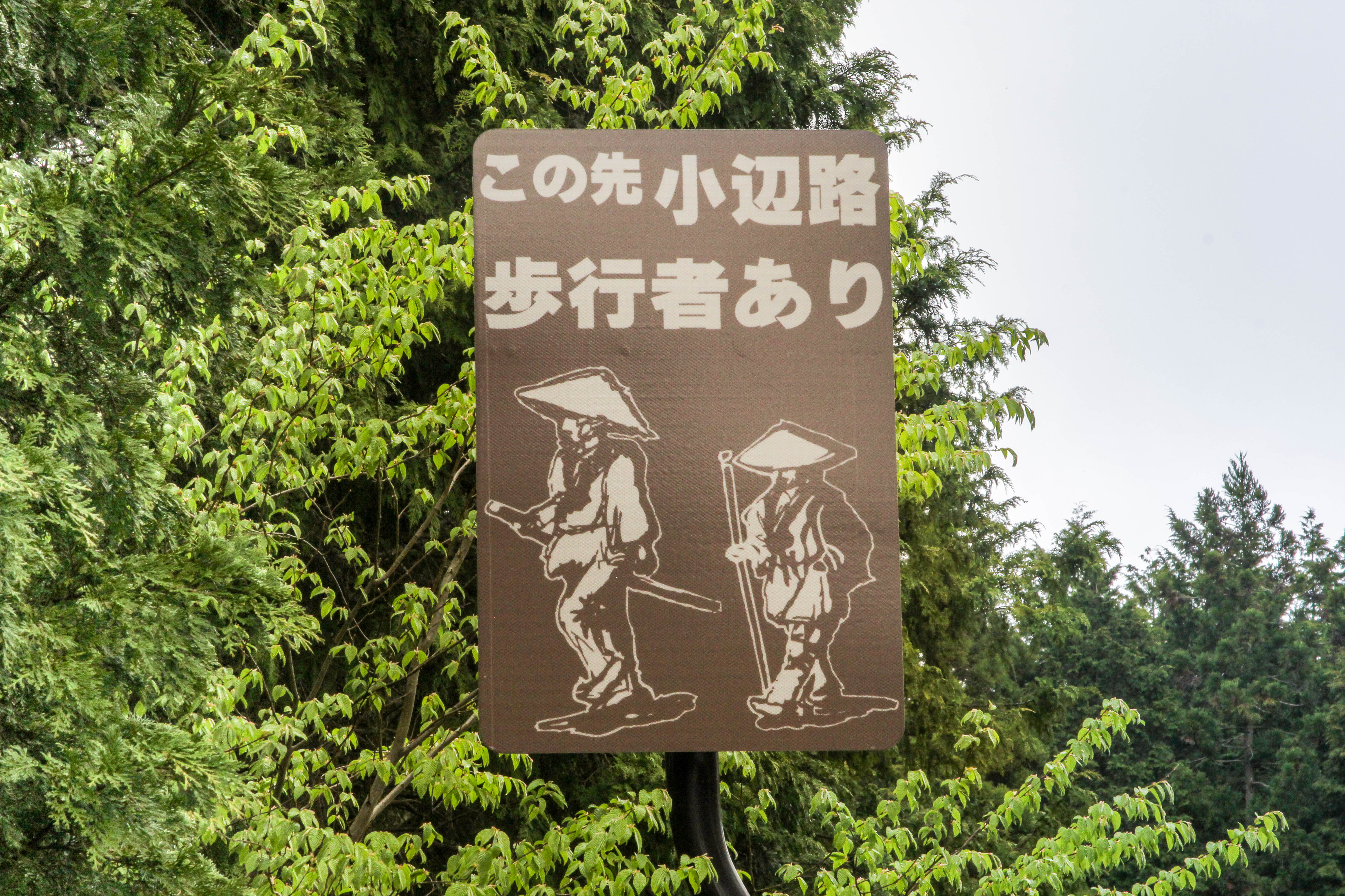 Signs along the road alerting drivers of hikers walking the Kohechi trail Published June 6, 2017 at 5184 × 3456 in Kohechi – Day 4 – Omata to Koyasan Next → Signs along the road alerting drivers of hikers walking the Kohechi trail