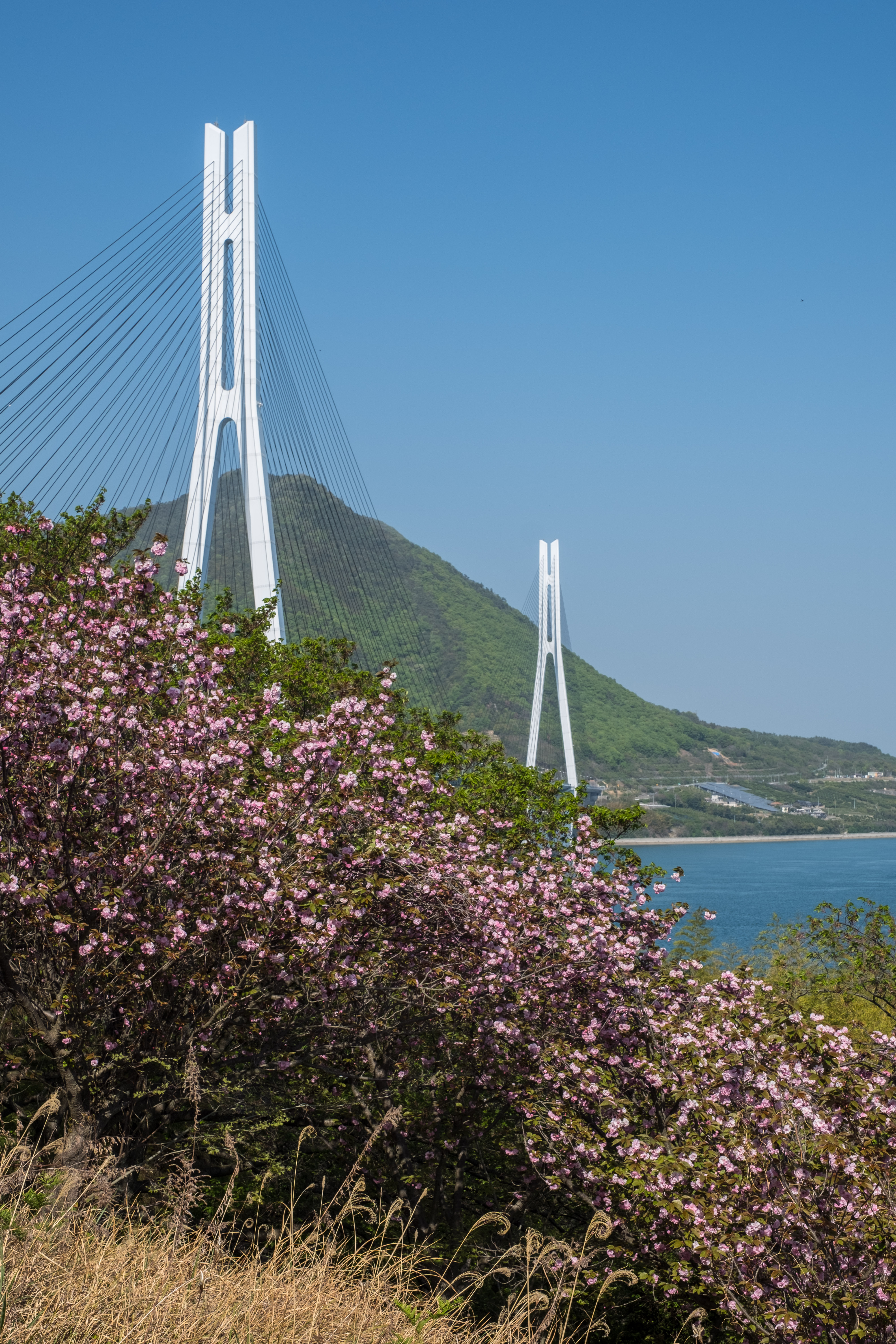 Sakura cherry blossom and Tatara cable bridge (1,480m) along the Shimanami Kaido cycling path Published May 7, 2019 at 4000 × 6000 in Cycling Japan – day 13 – Imabari to Innoshima Island (Seto Inland Sea) ← Previous Next → Sakura cherry blossom and Tatara cable bridge (1,480m) along the Shimanami Kaido cycling path