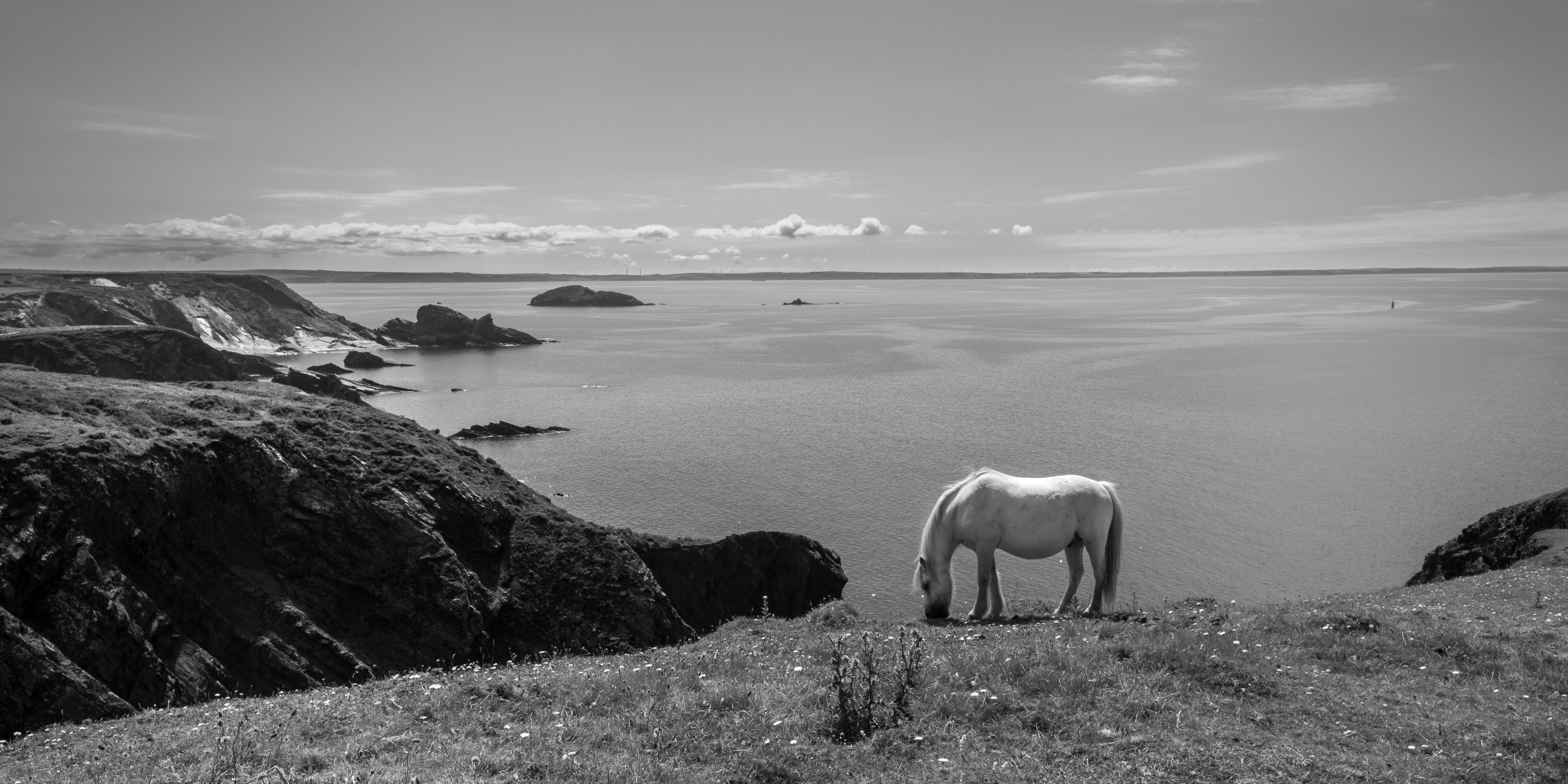 Ponies grazing on the Pembrokeshire Coast Path Published July 24, 2019 at 6000 × 3000 in Pembrokeshire Coast Path – Day 6 – Newgale to Abereiddy ← Previous Next → Ponies grazing on the Pembrokeshire Coast Path