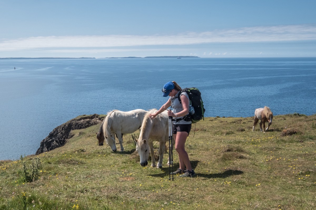 DSCF2195 Published July 24, 2019 at 4735 × 3157 in Pembrokeshire Coast Path – Day 6 – Newgale to Abereiddy ← Previous Next → KC and ponies on the Pembrokeshire Coast Path