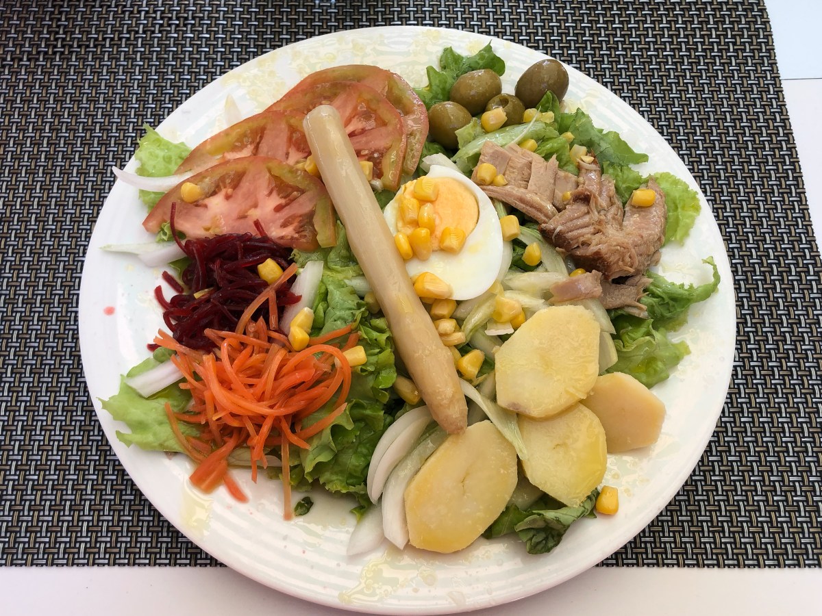 A typical ensalada mixta (mixed salad) for lunch in Gernika (although I did request ‘sin cebolla’ – no onion!) Published October 28, 2019 at 3808 × 2856 in Camino del Norte – Day 6 – Zenarruza to Morga (Eskerika), 28km ← Previous Next → A typical ensalada mixta (mixed salad) for lunch in Gernika (although I did request ‘sin cebolla’ – no onion!)